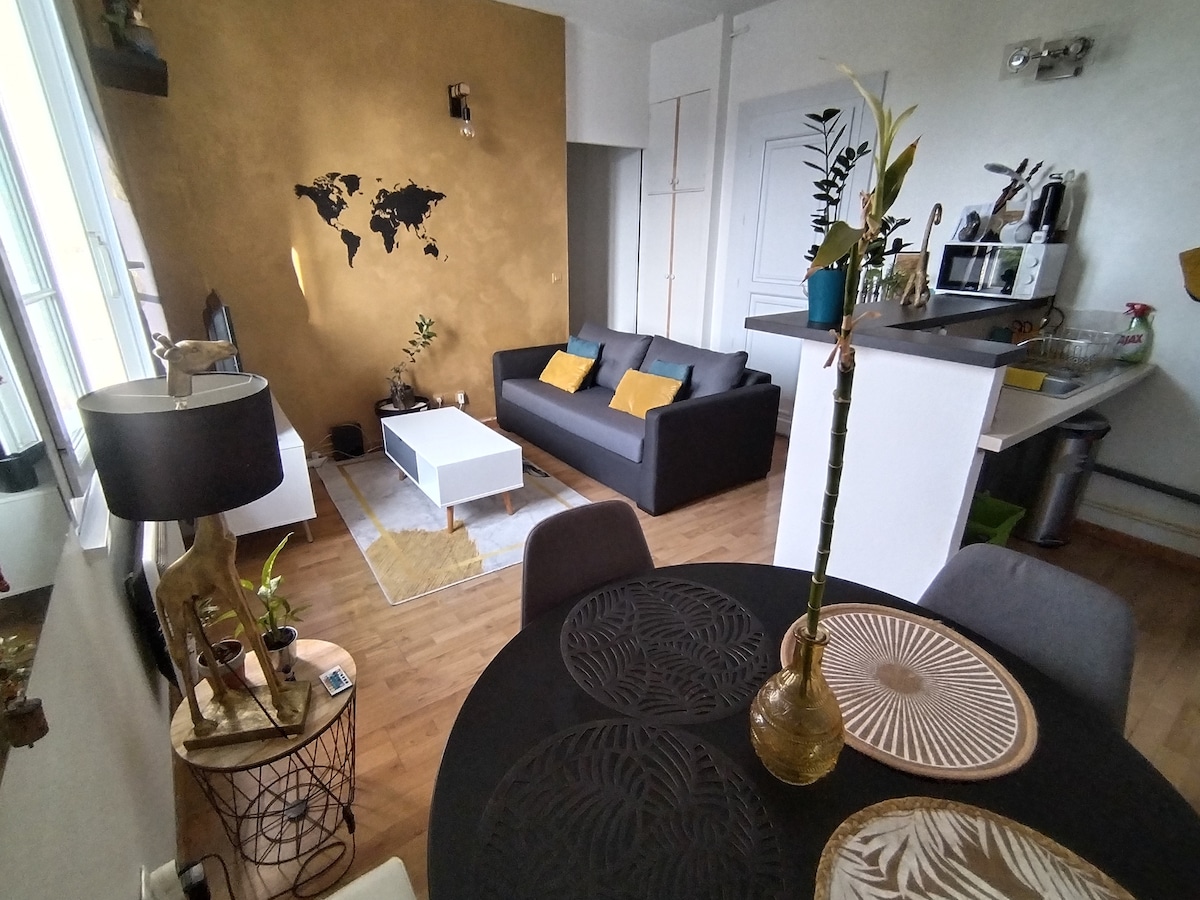 I rent my apartment when I am on vacation or on the go. As a result, it is very well-equipped. I decorated it with crafts from Asia and Africa. At sunset, the mountain views are very nice. I hope you feel good about it.