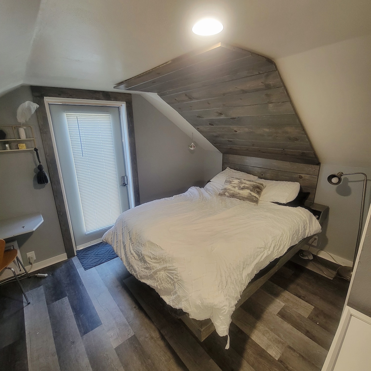 Perfect spot for visitors who want their own quiet space. NOTE, the ceiling is low at ~6'4".