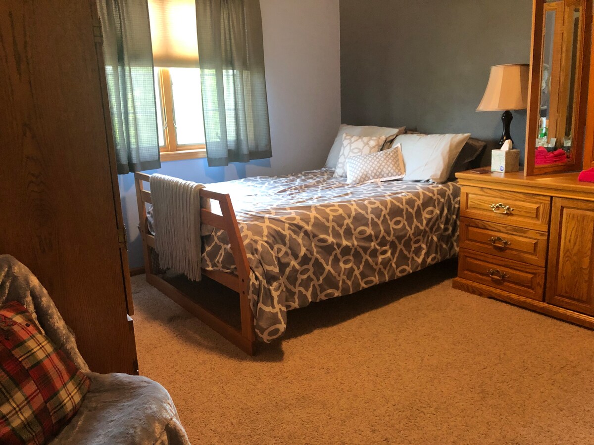 Cozy bedroom and bathroom in lower level of home walking distance to downtown Appleton and a short 30 minute drive to EAA in Oshkosh and Green Bay // Lambeau Field.