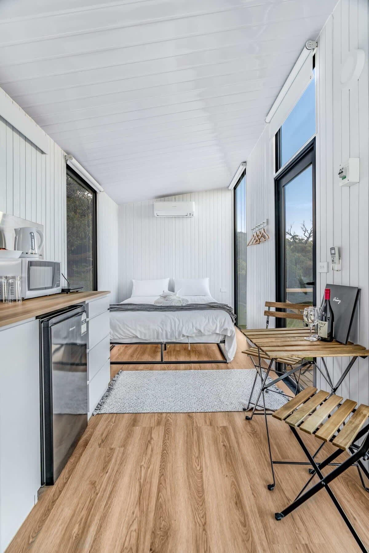 Beautifully renovated open plan Cosy Cabin with a huge fully secured backyard. Open plan style with a fully equipped kitchen and dining space. Super comfy double bed (all linen and towels provided), with ensuite. Clean, quiet and private. Safe and serene location. Only 5 minutes from the main town (Ararat) and 30 minute drive to the Grampians National Park. There is a Firepit to toast those yummy marshmallows or you can use it as a BBQ. This modern cosy space is located in a quiet street with mountain views. Lovely stay! Pets welcome!