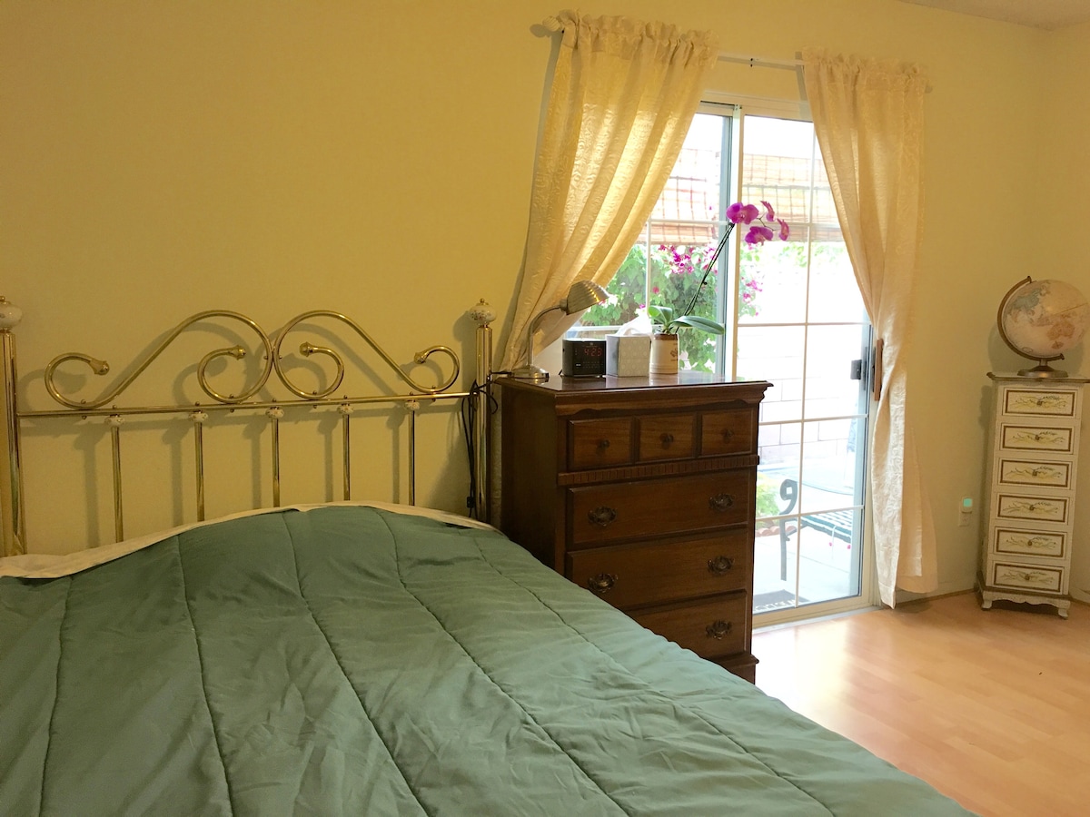 It is quiet cozy house with private entrance, private bathroom, private patio, facility with kitchenette come with a small fridge, microwave, some cooking ware, hexagon minerals water filter. Mountain view, city park at the street, walking distance to gold line Metro station, to downtown Arcadia, close I-210.