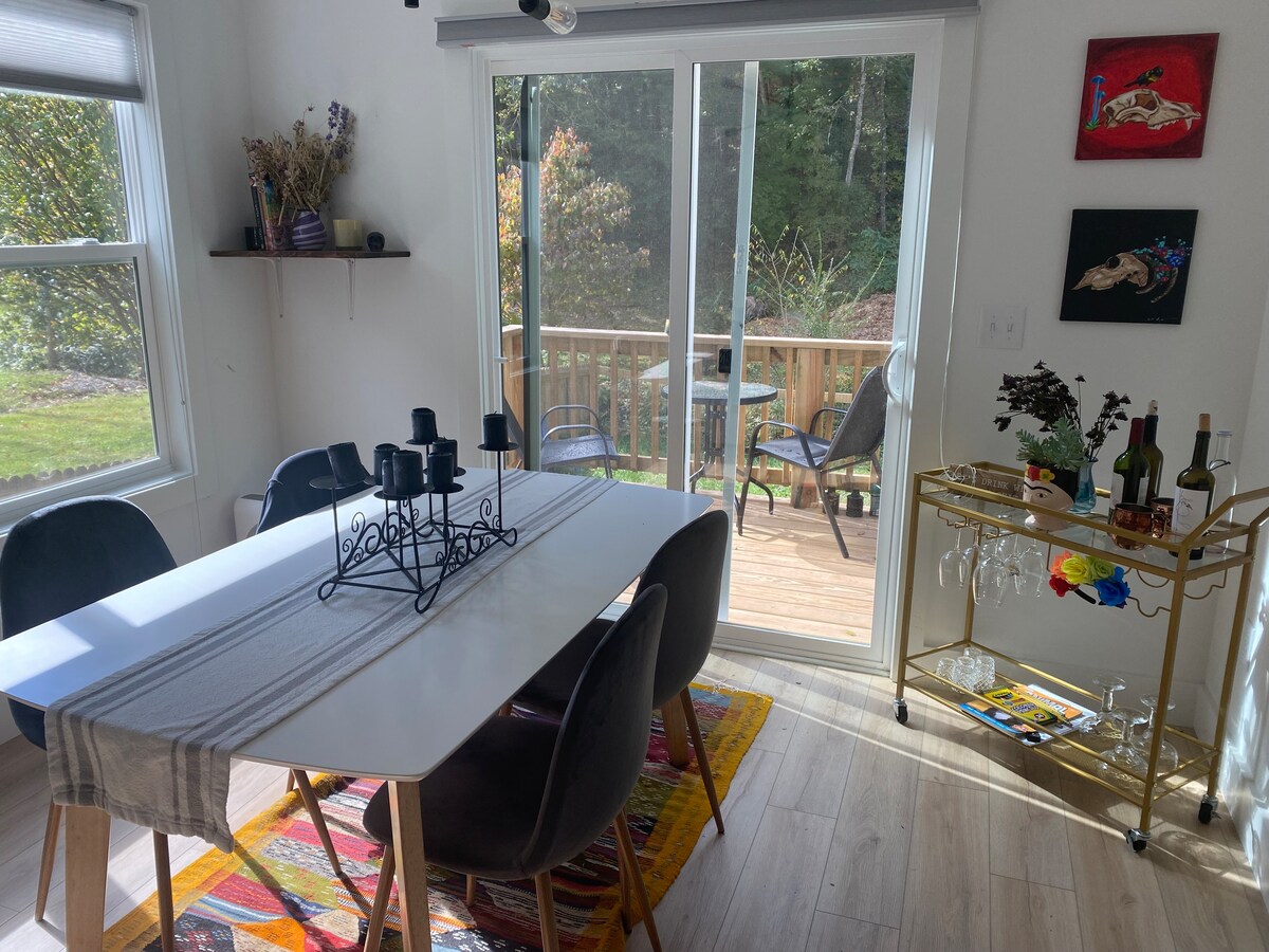 My home is situated in the woods with deer, wild turkeys and amazing song birds. Biltmore Estate, microbreweries, and restaurants are 15-20 minutes. Candyland’ s room is light and airy with a kitchenette