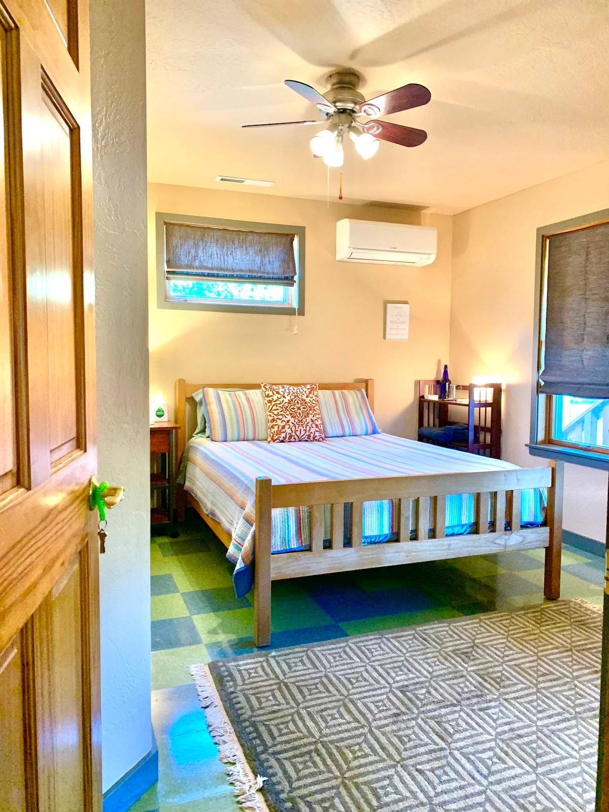 Although small, the space feels bright and airy with its warm wood accents and natural light, providing a peaceful retreat to wind down after a long drive or a day of exploring.