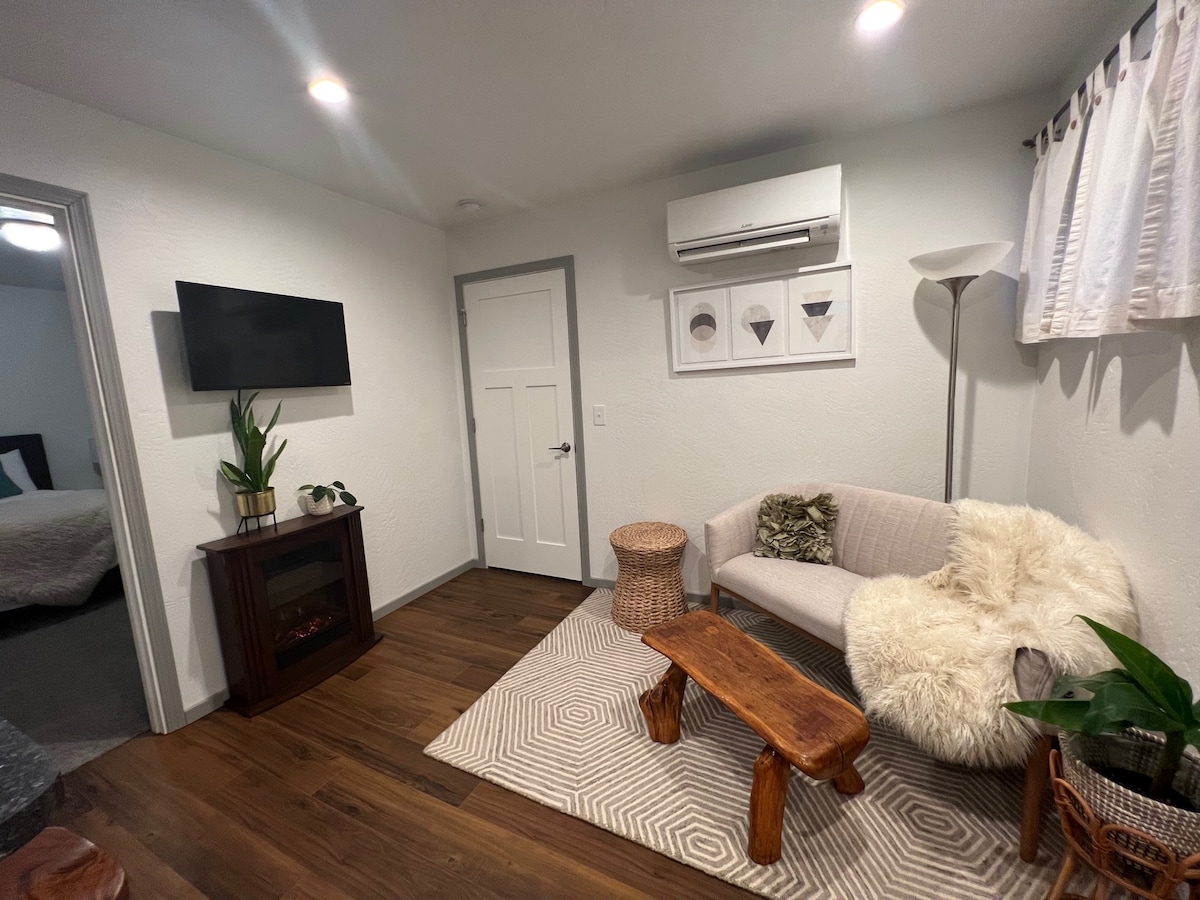 The ADU offers high-speed WiFi, A/C, and heating included in the rental price. Heating and cooling is controlled in the ADU with 2 mini-split units.