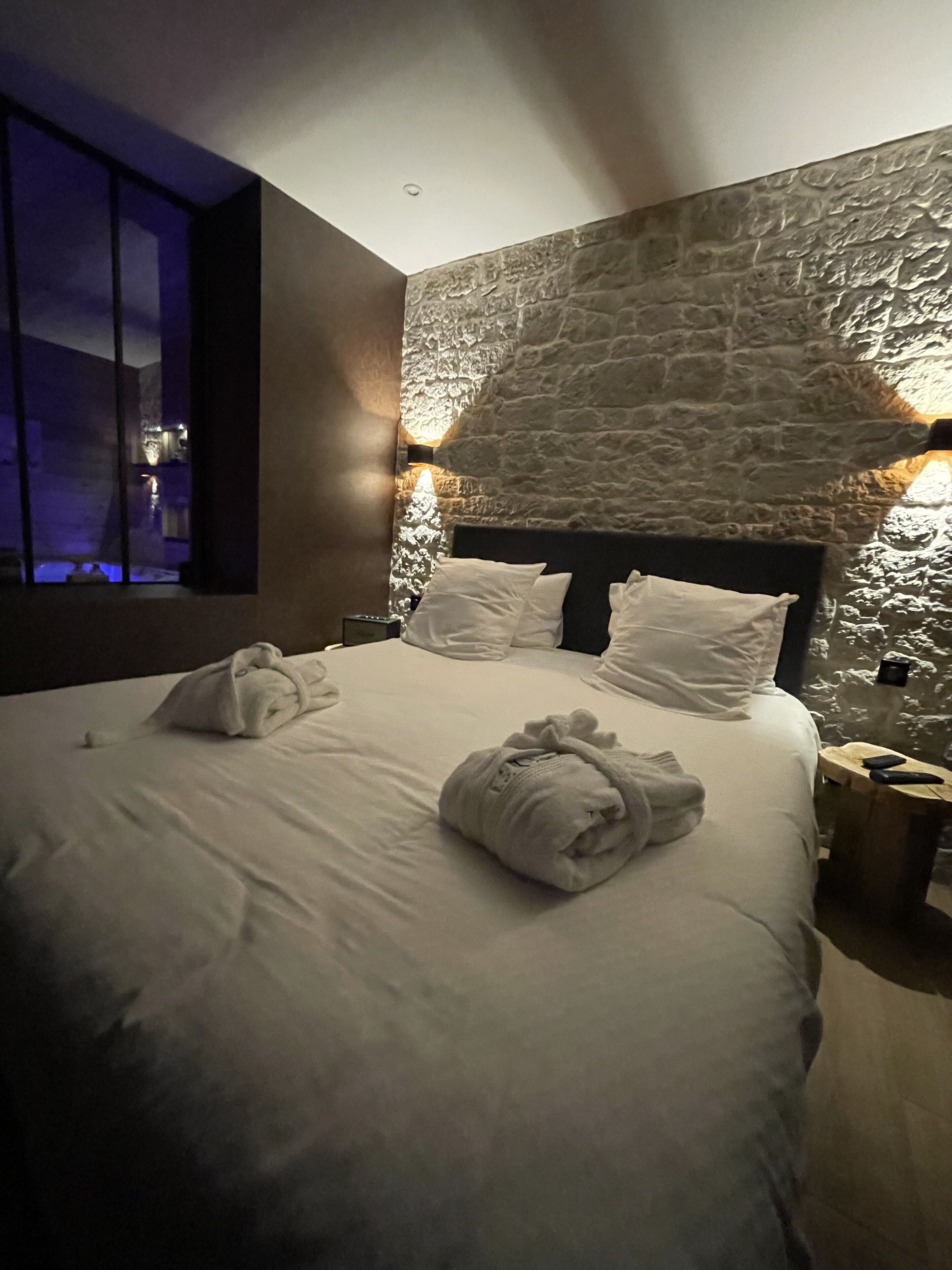 Enjoy a private light therapy balneotherapy jacuzzi.