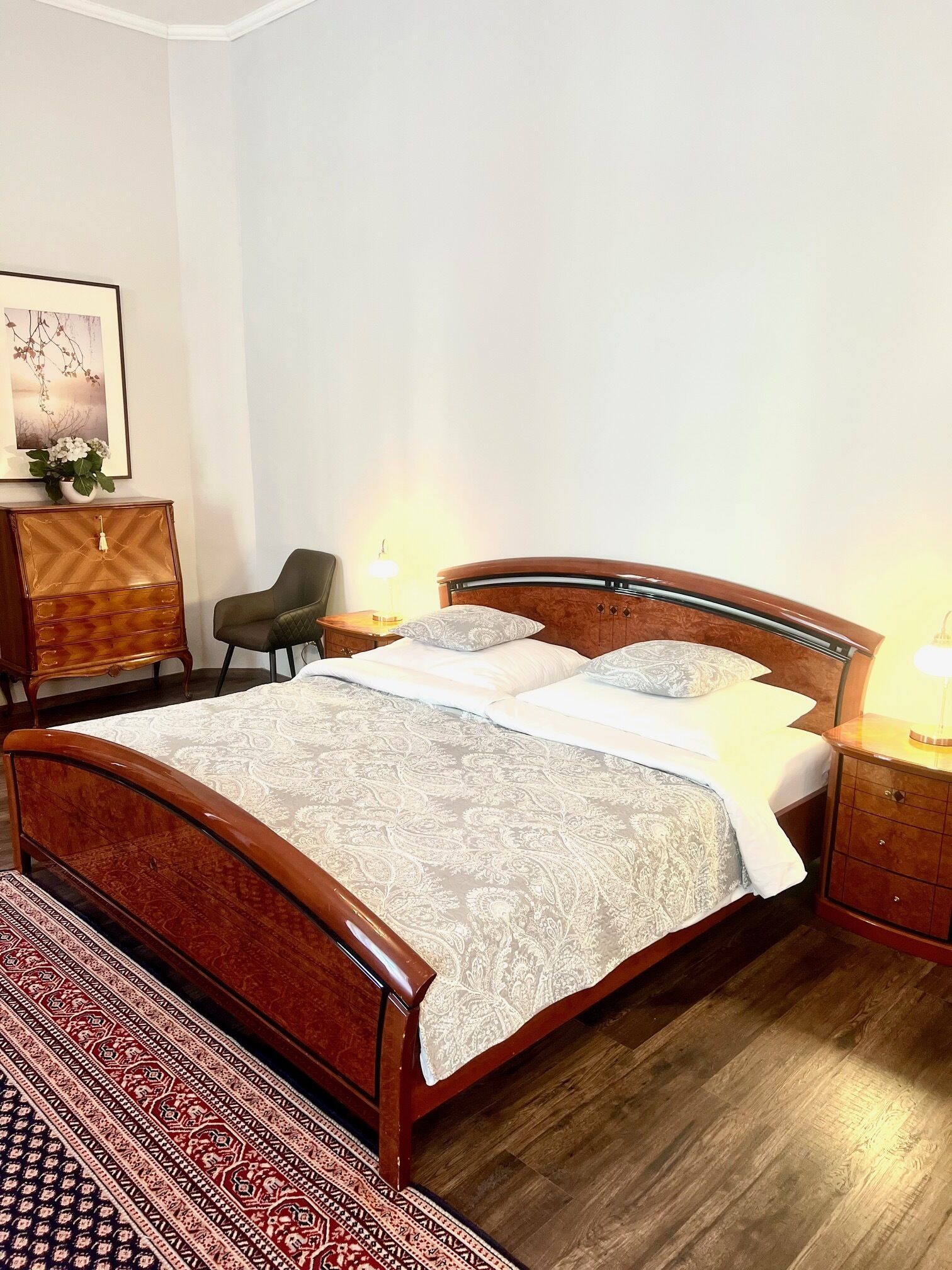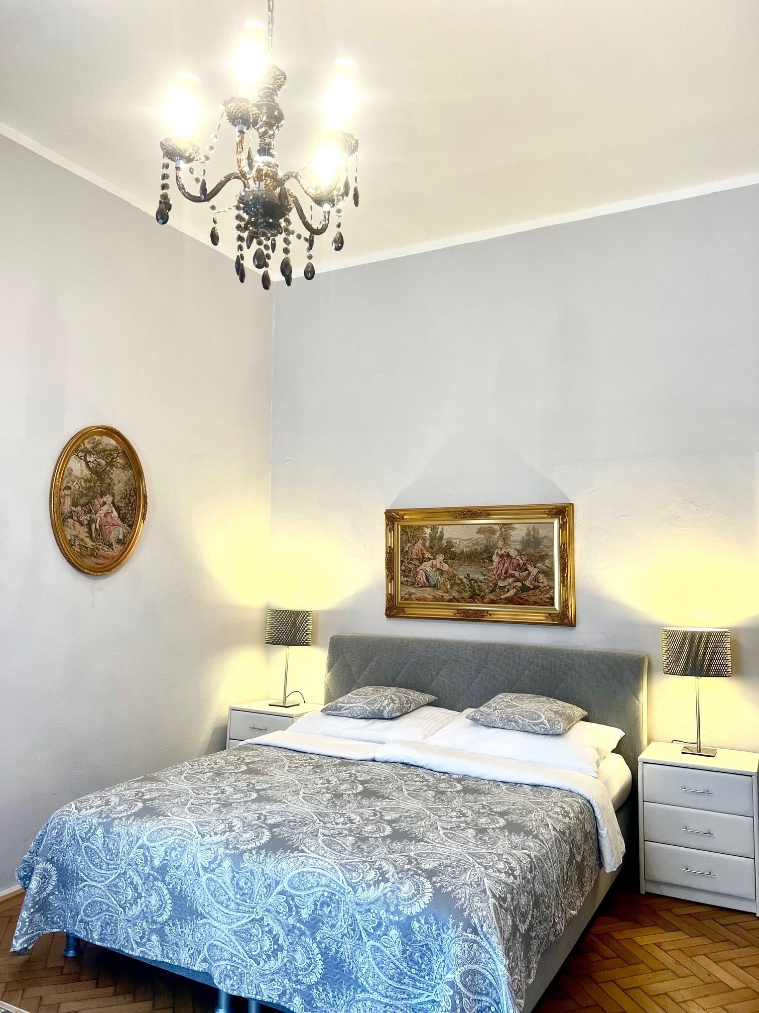 Very nice quiet and spacious apartment in the courtyard/garden of a Gründerzeithaus. The bathroom has a tub and a shower. The living room with a queen size bed is like all other rooms with a window in the quiet garden. The center with its beautiful pedestrian zone is a 5-minute walk away. The train station and the bus station on Josefsplatz are also reachable in a few minutes' walk.