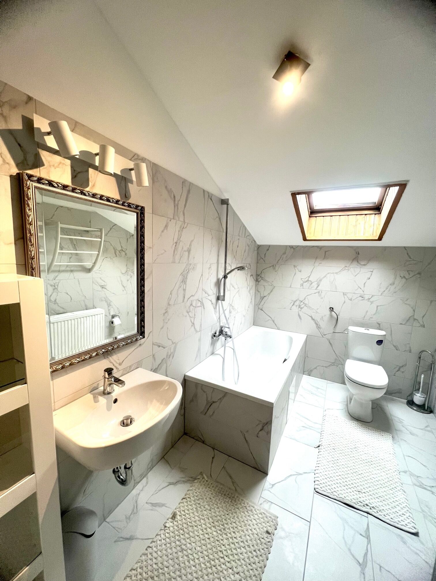 This cozy studio apartment has been decorated with a lot of heart to create a homely atmosphere and provide peace and comfort for guests. The living/sleeping area with the adjoining fully equipped kitchen-living room and the bathroom with bathtub and washing machine as well as a separate toilet. The thoughtful space concept combined with the bright, modern interior makes the apartment look spacious. The attic apartment is not far from the city center of Baden.