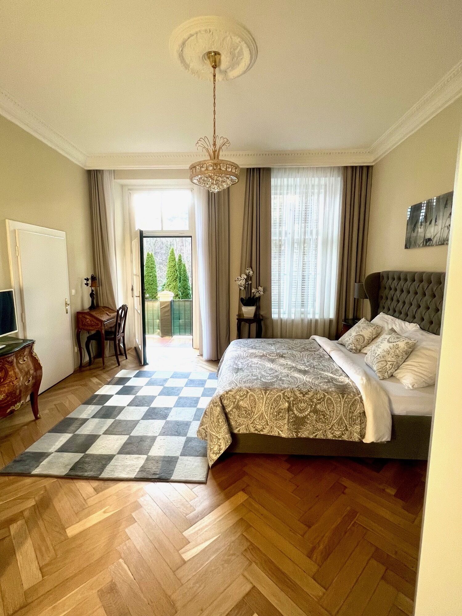 Stay in this peaceful and centrally-located place overlooking the city garden and spa park.