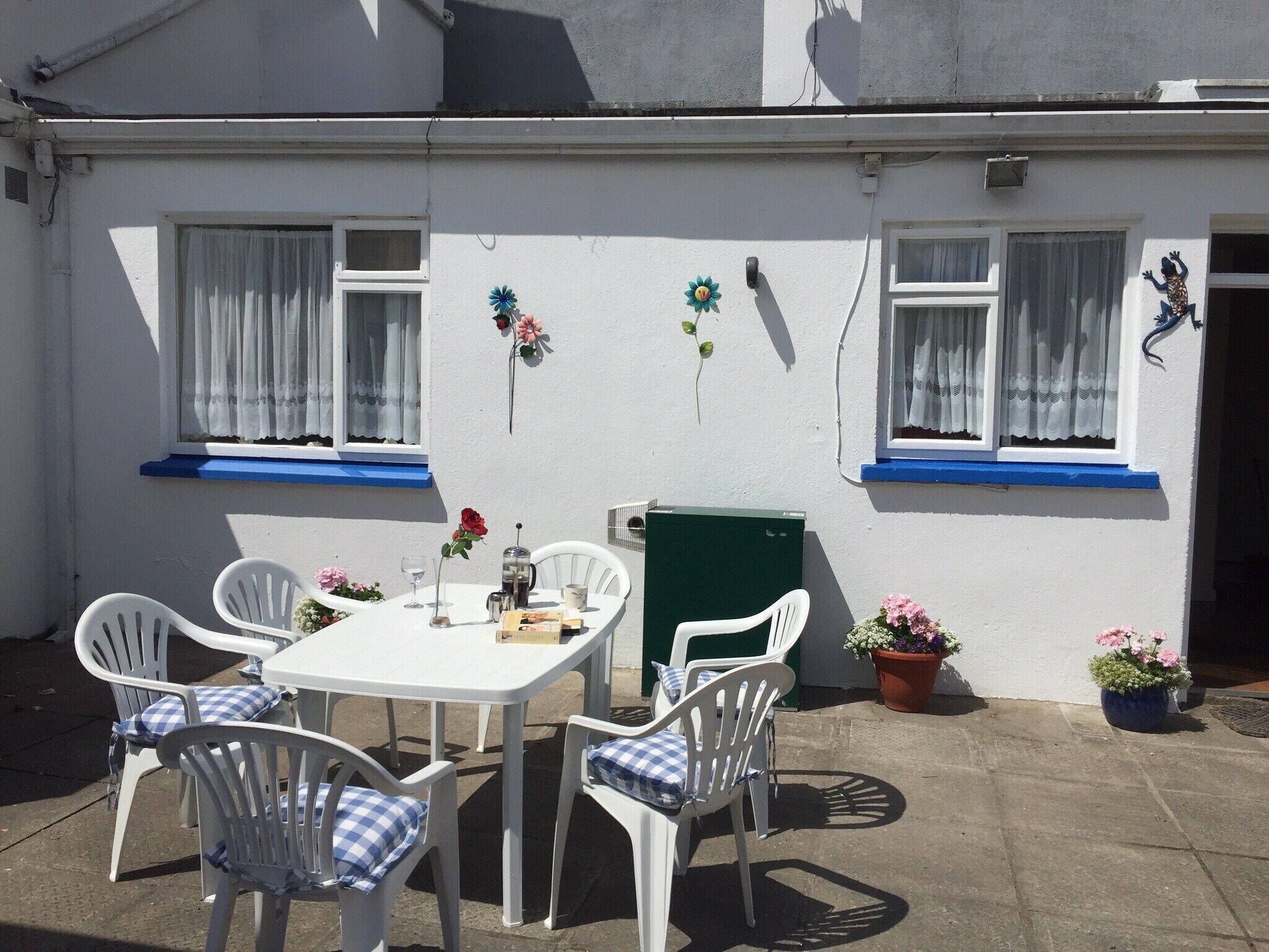 My home with private entrance and garden has 3 superking size beds and 1 double, a fully equipped kitchen with a bathroom upstairs and a large downstairs bathroom with a walk-in shower.