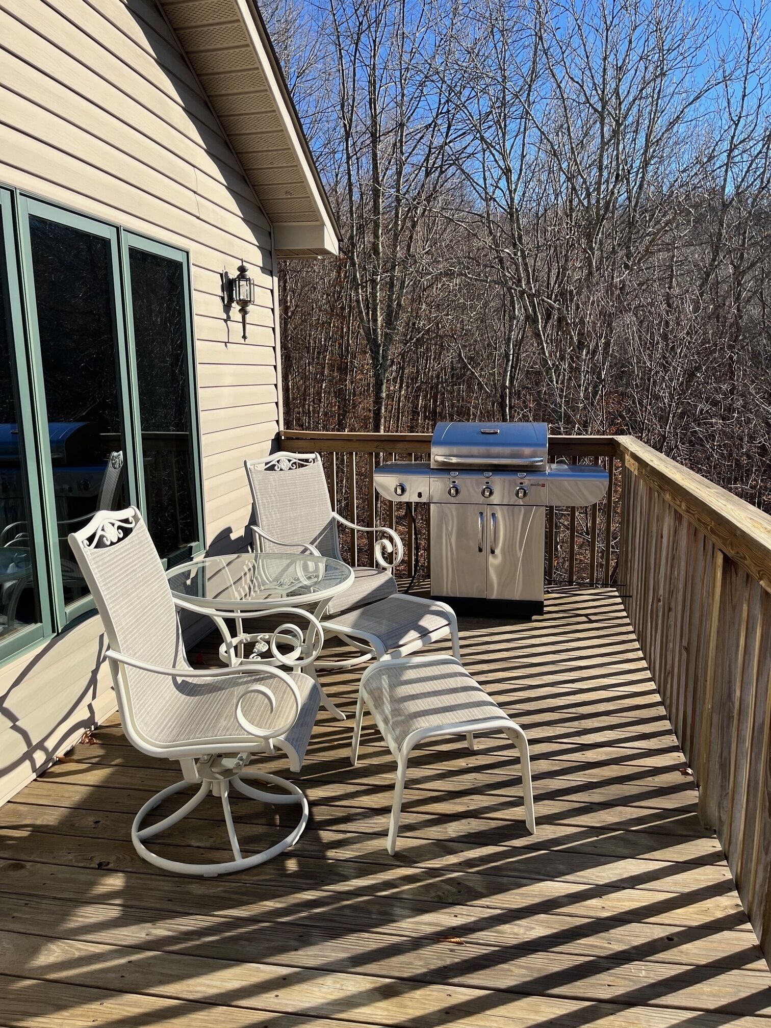 ✔ Watch deer and wildlife pass by the large sliding glass doors.