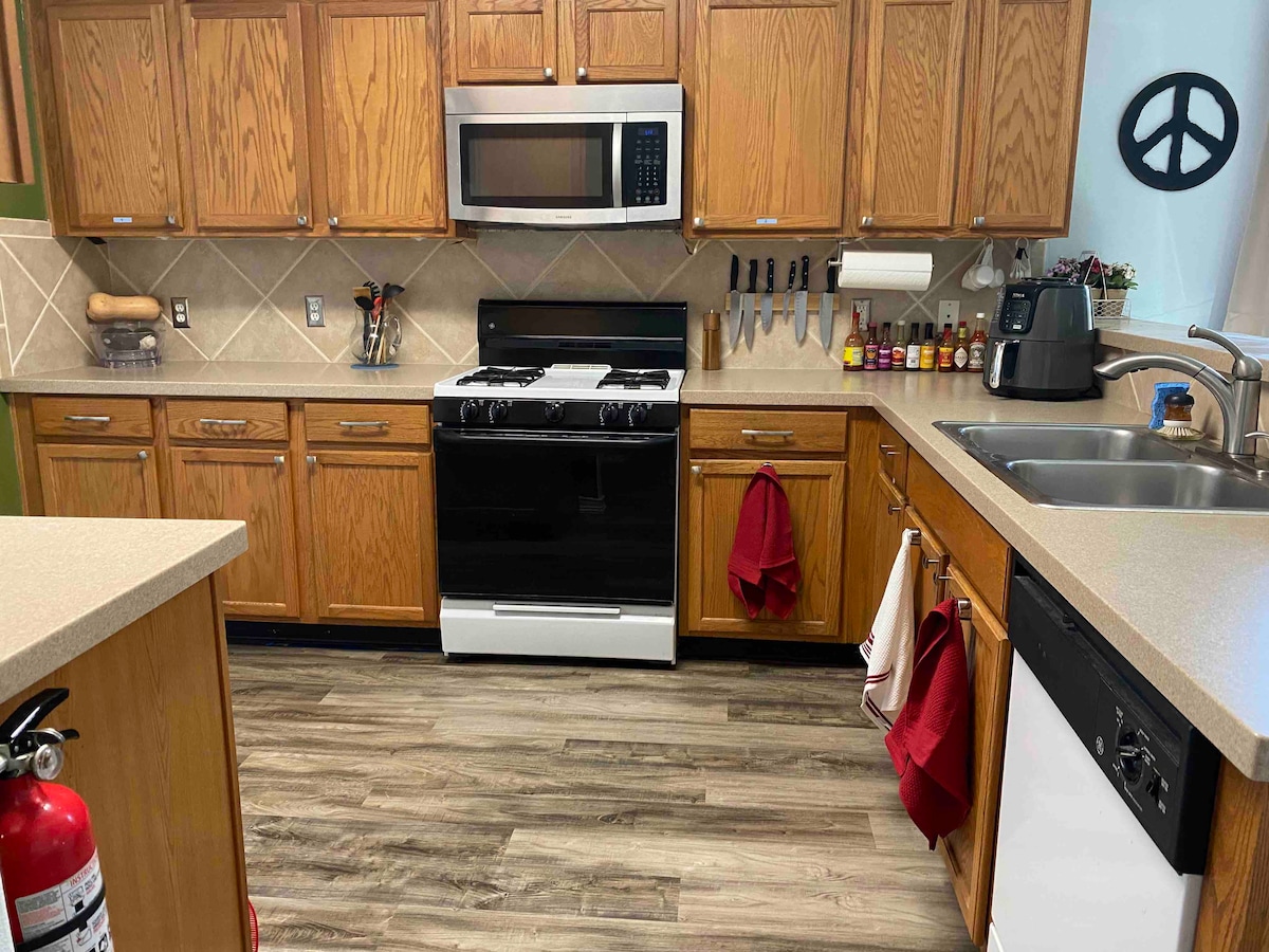 The kitchen is fully stocked with pots, pans and cooking supplies, the bathrooms have plenty of fresh towels, and the bedrooms have fresh linens! The Smart TV comes with NetFlix, Pandora, SLING TV (with Sports Package) and other streaming channels for you to enjoy your stay. The lighting fast wifi will make working from home a breeze. send us your questions!