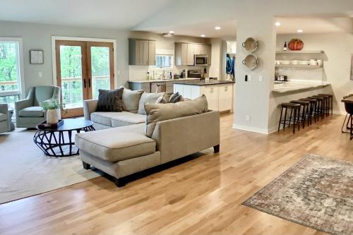 Well-equipped kitchen, large covered porch, plus yoga and hammock balcony overlooking Beaver Lake.