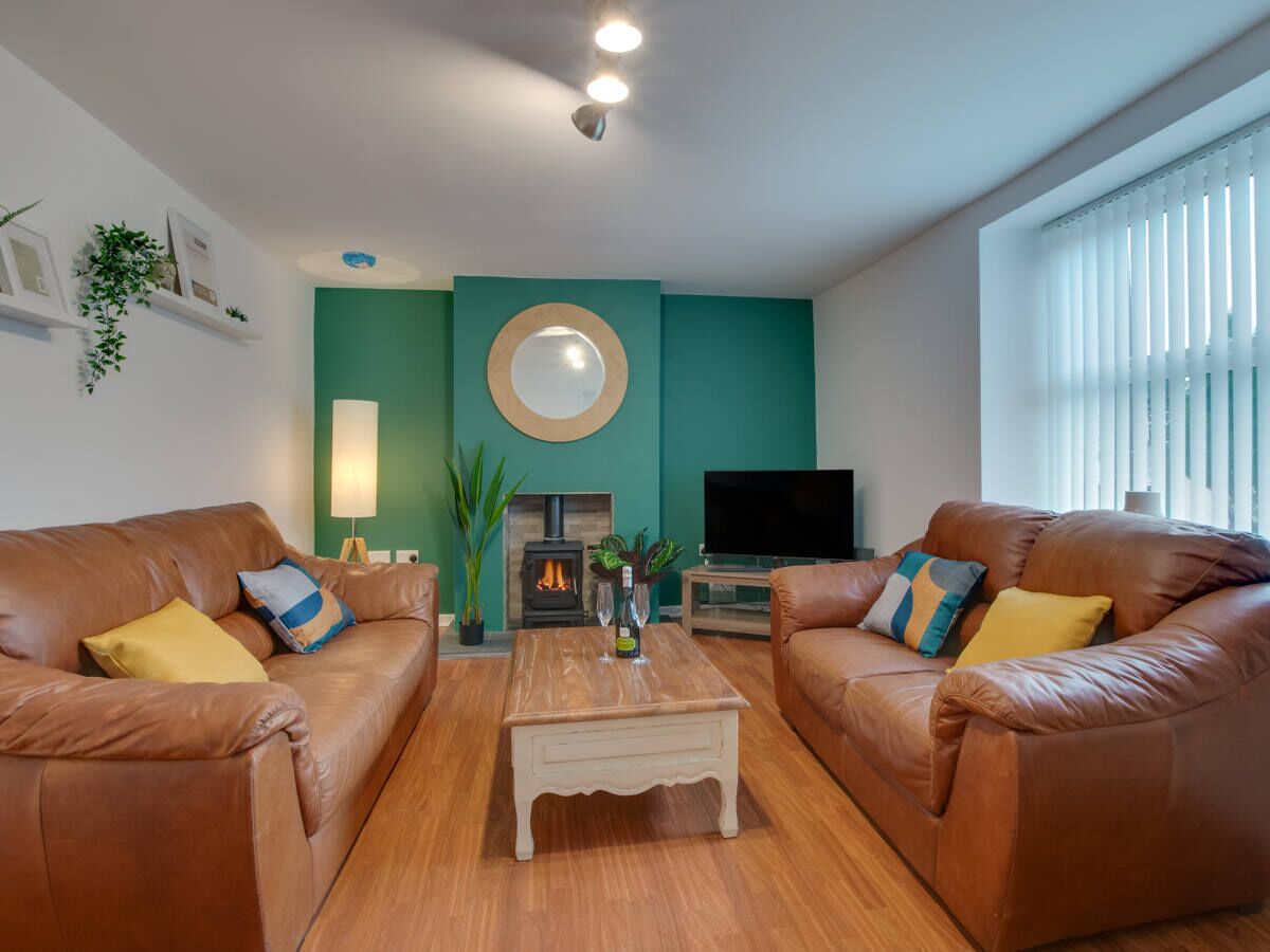 Rooms: Ground floor: Lounge with plenty of natural light, two leather sofas in front of a smart TV and a traditional looking stove with gas fire. Kitchen / diner and separate utility room. Upstairs: Two bedrooms, one king-size and one single bed. Bathroom with bath and walk-in shower.