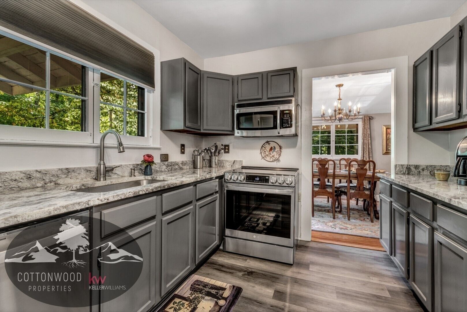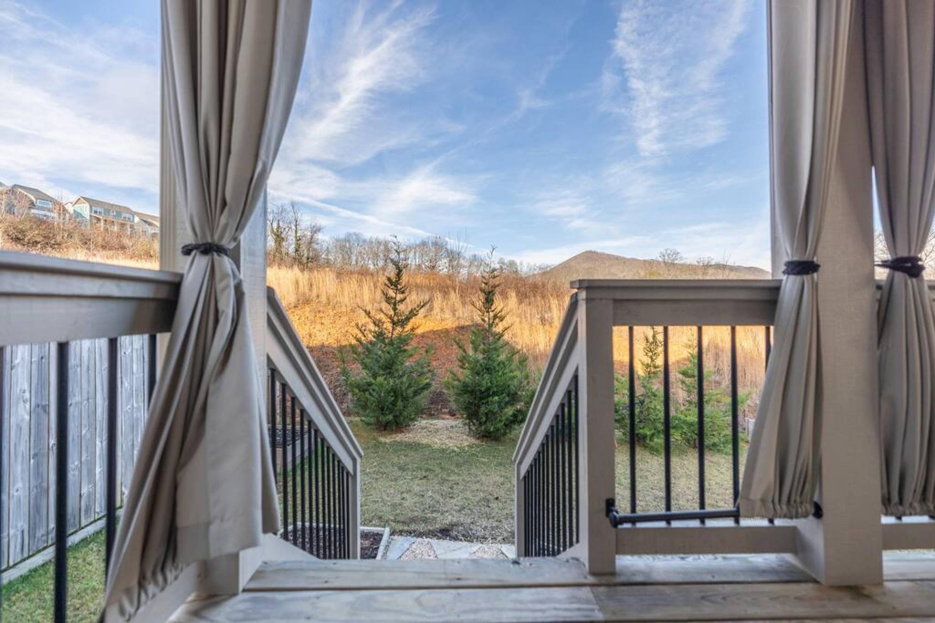Relax in the mountains at this landscaped property that features a large two level backyard with lawns and a bridge over the stream. There is lots of room for the kids to run , kick a ball around, and play in the stream. Enjoy two covered porches with outdoor seating—a perfect space for morning coffee, playing board games, outdoor dining, doing crafts, or reading a good book.