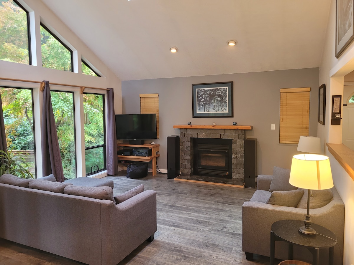 The home is surrounded by tranquil forest and backing onto a creek with easy access to Tunstall Bay Beach (800 m-8 mins by walking), Cape Rogers Curtis Beach (2.8 km), Golf Club and numerous hiking trails. It is 7-10 min by car to restaurants, cafes, sushi, a pizzeria, boutique shops at Bowen Island Village, Artisan Place and a ferry terminal. Public transportation is available - a local bus (280 route). Come to relax and listen birds in the morning and sit by the creek on the hot afternoons