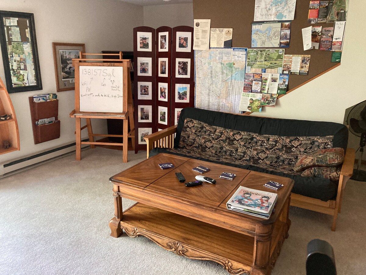 Takes awhile to heat up but the Man Cave has wood burning stove with unlimited firewood; there is a bar, bar stools, poker table/chips, table and chairs, refrigerator/freezer, couches, Microwave, toaster oven, and pizza maker. I am Surrounded by resorts, Maddens/Craguns/Kavanaugh’s approx 5 miles to the South, and Quarterdeck, Grandview to the north; Across the street from property is the Restaurant Sunshine Summerhouse along with access to Pillsbury State Forest, miles or trails for hiking, biking, horse trails (riding), and snowmobiling in the winter.