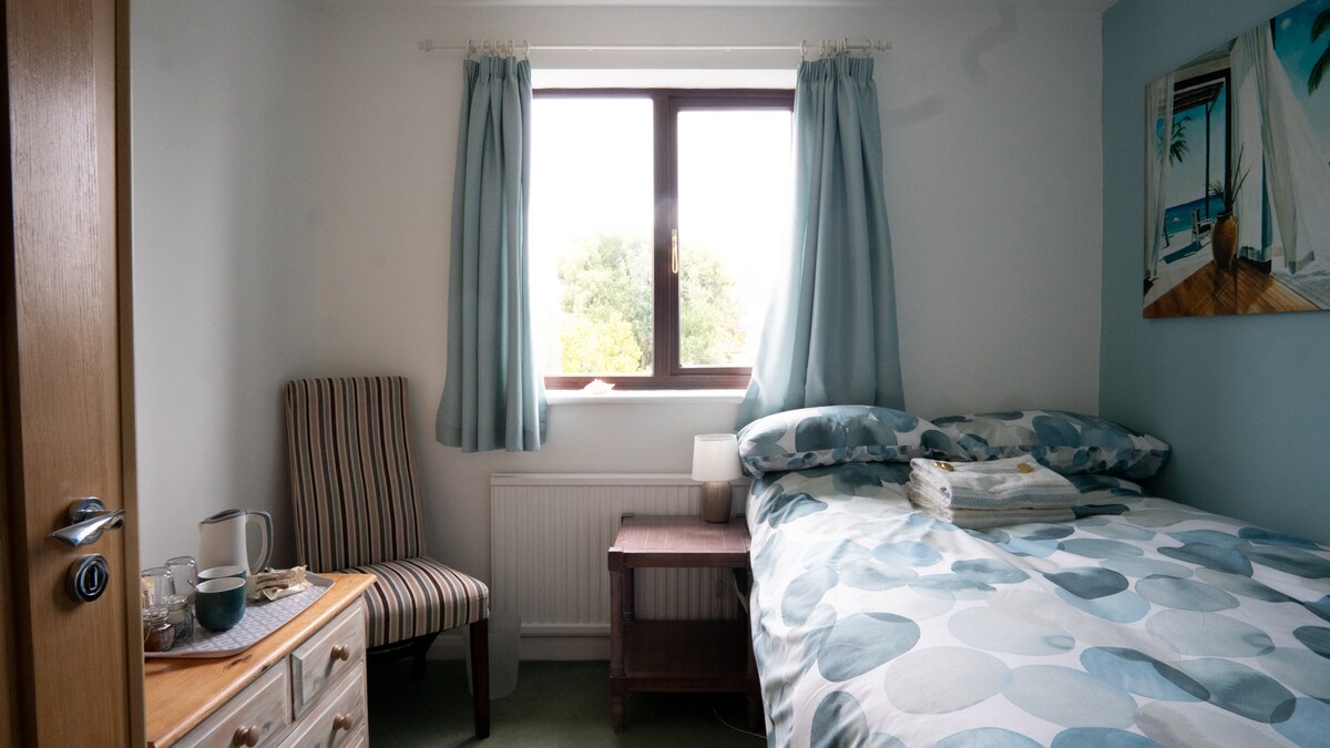 Comfortable single room with tea and coffee making facilities in the room.