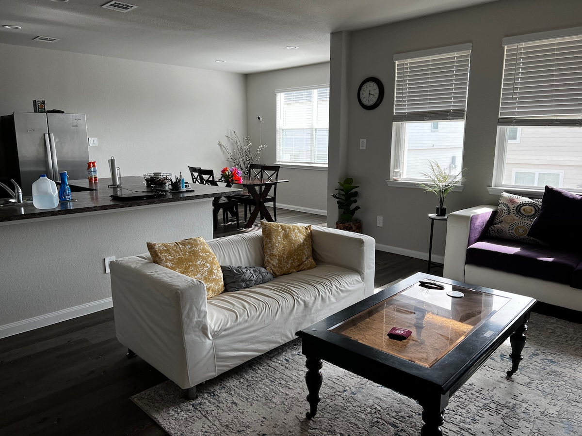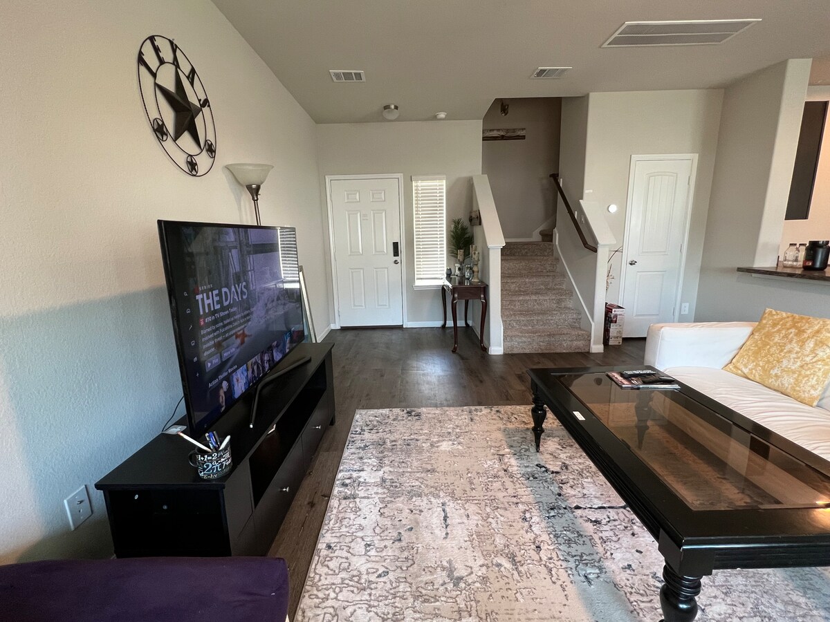 You'll love this private room in a brand new 4 bedroom house with all stainless amenities, a fully equipped kitchen, laundry in the unit, two and half shared bathroom. Home has large open living space, parking, privacy fenced backyard and nice patio. Spending time in the backyard in summer will make living more enjoyable. Both long and short term stay are available. A&M, Blinn College, Walmart are very nearby and within few miles. Professionals/Students are welcome. Laundry inside the house.