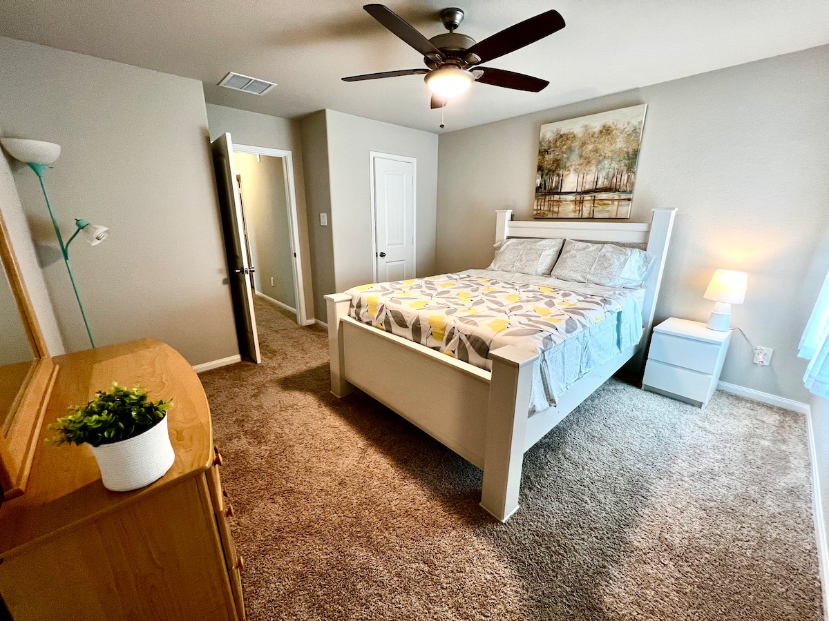 This private bedroom is in our 3Bx2.5B home which is in a family-friendly neighborhood in Bryan, close to great restaurants and bars.