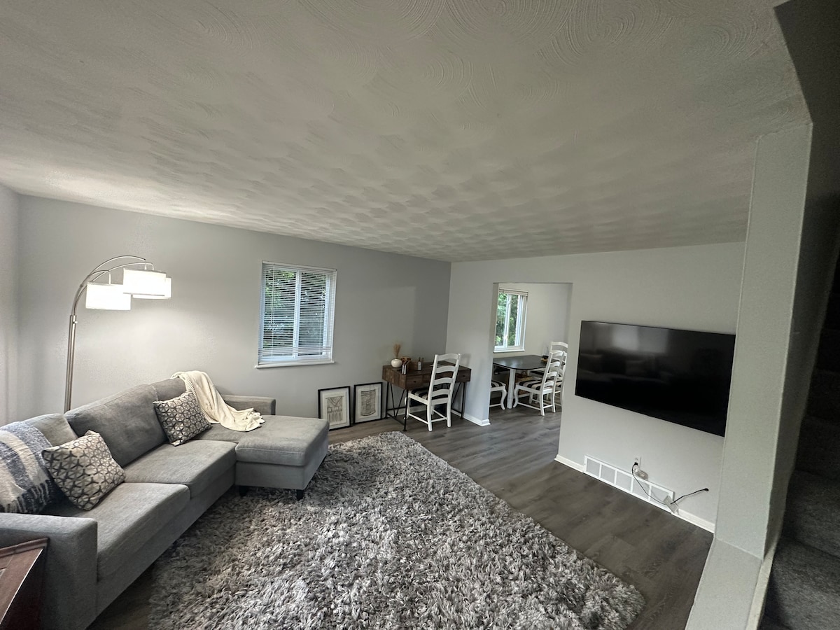 All of our furnishings are brand new and designed around your comfort. Our two bedrooms each have a memory foam hybrid queen bed and charging ports on the nightstands. There is an eat-in kitchen, a living room with a smart TV, and a bonus family room/den/office downstairs with a second smart TV.