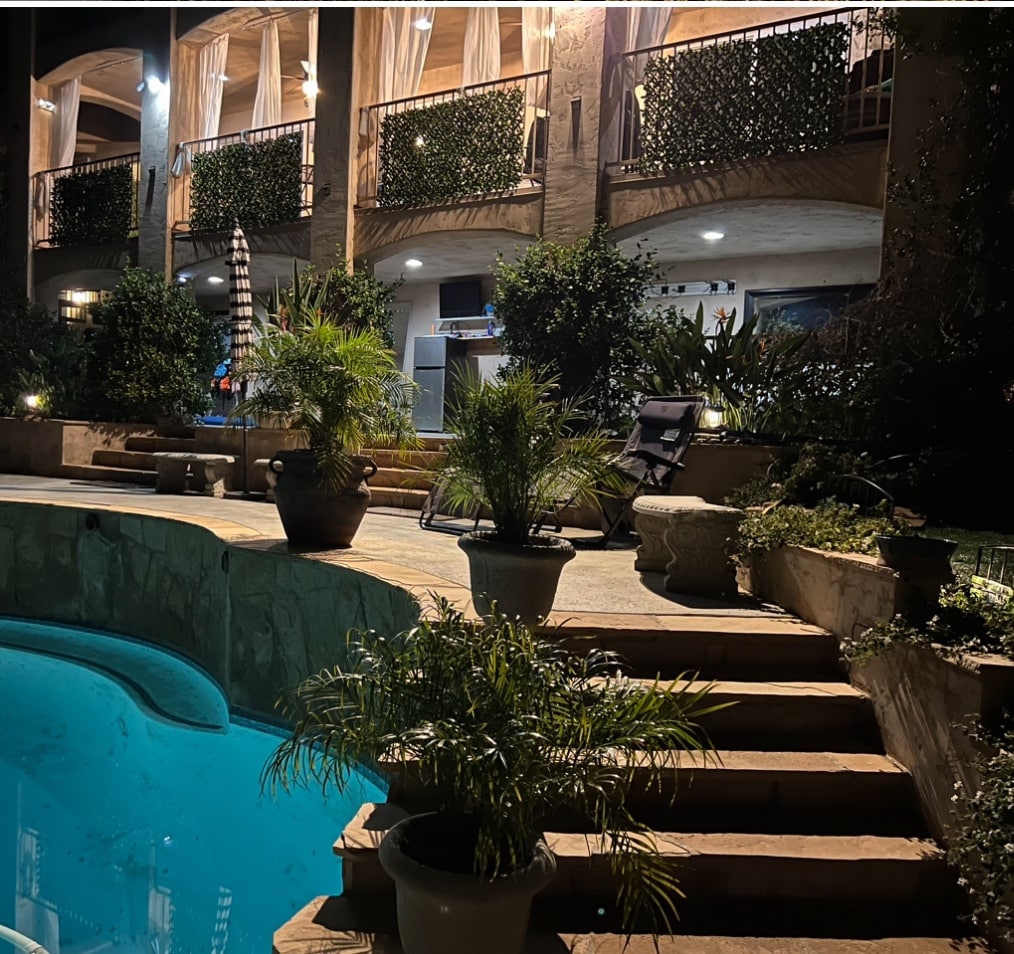 Major overhaul to all yard areas, where the pool is (500 square feet of turf + update to all plants and Palm trees), overhaul to the yard by the driveway (change to a DG ((decomposed granite)) surface), outdoor furniture additions of chaise lounge, 4 new chairs, 1 new glass table, repainting of 4 outdoor chairs and 2 loveseats.
