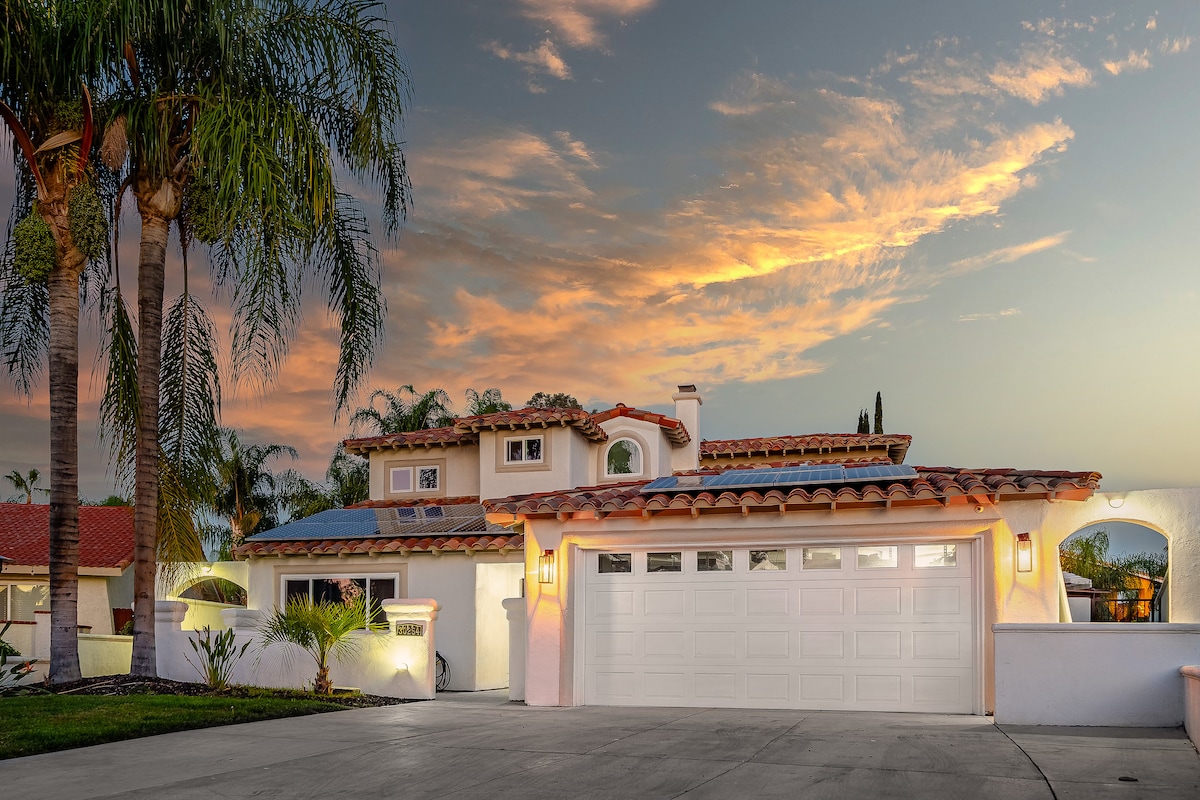Our modern, Mediterranean-style home faces sunrises to the East off the driveway, and faces panoramic sunsets over the community lake, and the Ortega Mountains on the Western rear view. Your access comprises spacious family room with TV over fireplace. There is a full outside terrace, and a full veranda off the pool/spa with spacious patio seating and lounging areas. BBQ on the terrace, or BBQ down by the pool. Also, a pool side powder room is available for use with its exterior wall shower after a swim or jacuzzi spa use.