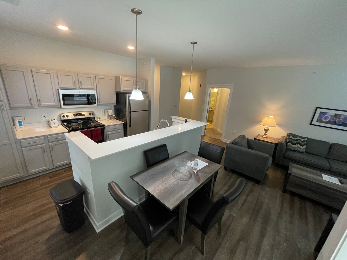 The main living area is open between the kitchen, dining, and great room, whic is ideal for socializing. The kitchen features all appliances and conveniences you may need, including a Keurig coffee maker and even filtered drinking water.