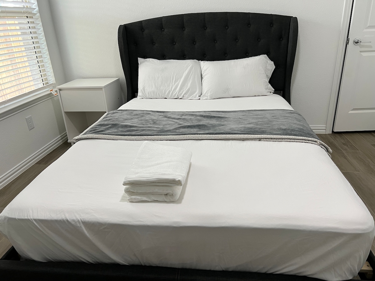 spacious bedroom, private sink (share bathroom,) walk in closet ,game room with tv, perfect for a long or short stay I have a team of housekeeper will clean during you stay, tv in the bedroom,queen bed , I have plenty of storage room for you food
