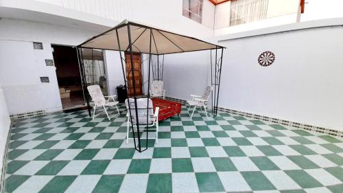 Providing inner courtyard views, Casa Pacasmayo in Pacasmayo offers accommodations, a garden, barbecue facilities, and a shared lounge. The guest house also provides free Wifi, free private parking, and facilities for disabled guests. Each unit features a terrace, a fully equipped kitchenette with a microwave, a dining area, and a flat-screen TV, while the private bathroom includes a shower and free toiletries. A patio with an outdoor dining area and garden views is offered in every unit. At the guest house, all units are equipped with bed linen and towels. Sightseeing tours are available within easy reach of the property. The guest house has a picnic area where you can spend the day outdoors. Capitan FAP Jose A Quinones Gonzales International Airport is 58 miles away, and the property offers a paid airport shuttle service.