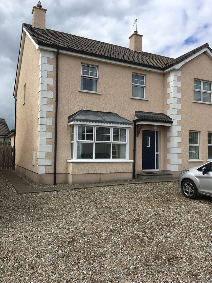 Thankyou for looking at our holiday home. We are pleased to offer our three bed two storied terrace house comprising of two double bedrooms and a third smaller bedroom with bunk beds for children. There is a Shower room upstairs with WC and the home is fully central heated throughout. The property has been recently modernised and finished to a high standard both inside and out. There is a modern fitted kitchen with American style fridge freezer, electric oven with a Hob and a built in microwave. The Blue Doors is Located in a small quite residential estate within 10 minutes walk from beach, village centre and the Railway Station linking Dublin, Belfast and Londonderry. The house is fully equipped for day to day familly living with TVs in lounge and bedrooms, DVD player, WiFi and washing machine also a secure enclosed paved rear yard for the kids to play safely. To aid cleaning for the next guest we have had to remove some items so please bring your current book, favourite DVD, CD or childs toys. A additional cleaning charge may be incurred should our home be left in an unclean state or with damage. Sorry strictly NO PETS or SMOKING and to accomodate our neighbours no loud behaviour or parties.. Please note that there is a minimum stay depending on season. NI Tourist Board approved.