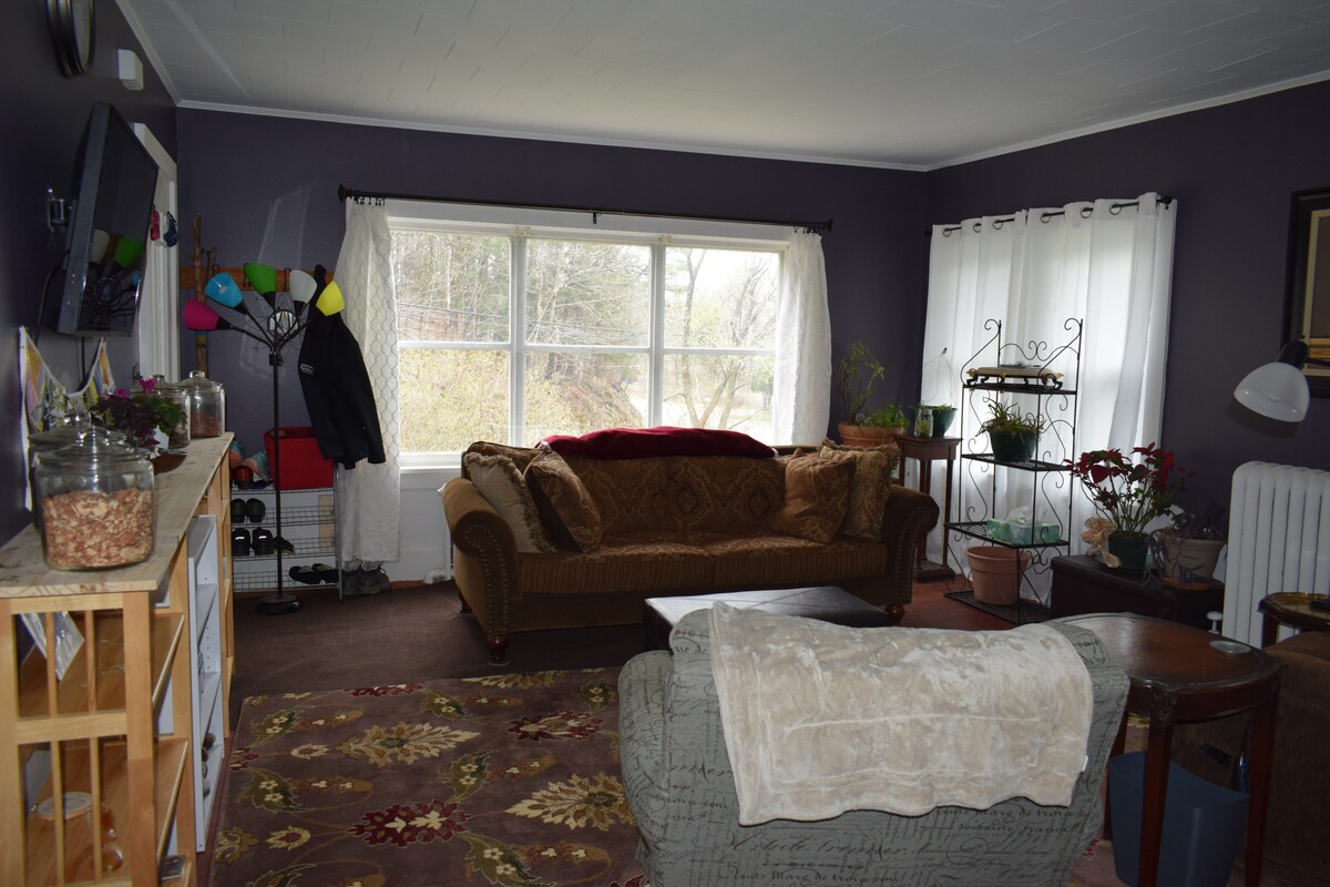A nice sized living room with two couches that have electric recliners built in, a 52 inch Samsung flat screen tv excellent WiFi. with Eero, a roku stick for movies and news or if you prefer, a view of the lovely little village of Leeds N.Y. lastly, a reading room stocked with a few dozen paperbacks from various genres, with a proper reading light and most importantly a Huge overstuffed leather recliner.