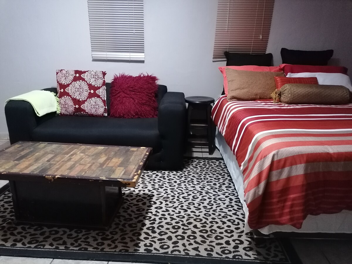 Fully furnished self-catering room in a quiet and secure property. Main en suit bathroom & toilet. Furnishings include double bed with bedding, spacious closet, couch, fridge, cooker, microwave, washing machine, DStv.