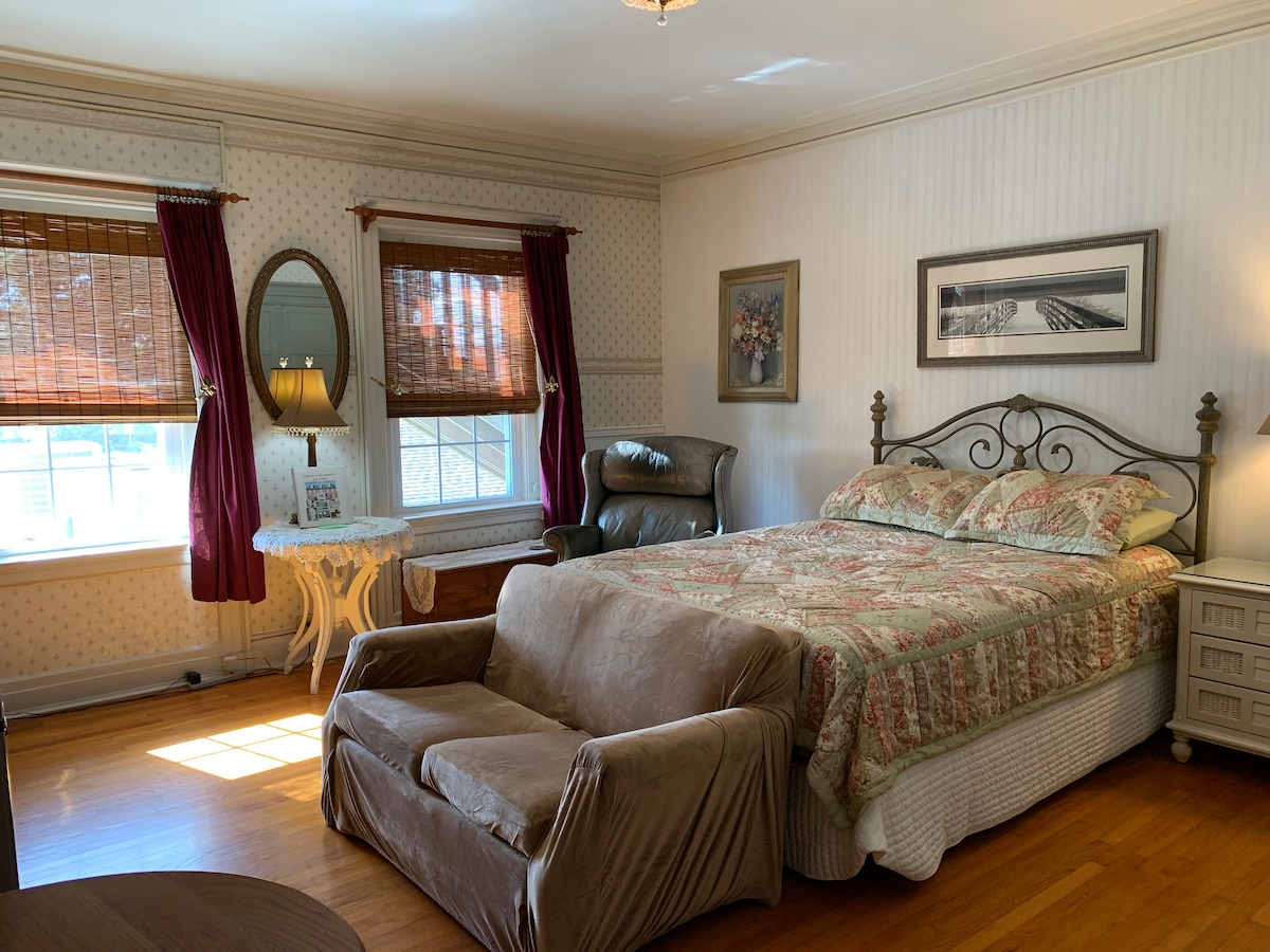 Take it easy at this unique and tranquil getaway. Nora's suite has been home to a business for many years but as our demand for unique living spaces continues to grow, more rooms will be added. Photos will be available for this room with beautiful hardwood floors and plenty of natural light, in early to mid September. While this room does have a shared bathroom, the bathroom is located next to the room.