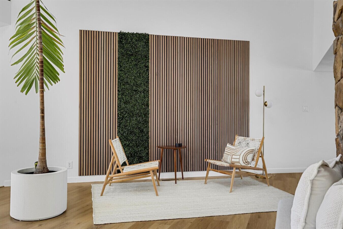 Relax on the comfortable furnishings in the living room and enjoy the airy feel, provided by natural light streaming in through oversized windows. You’ll find an ideal setup for conversing, with a sofa and two chairs facing each other. Watch movies and more favorite programming on the TV using a Fire stick to access streaming channels or apps.