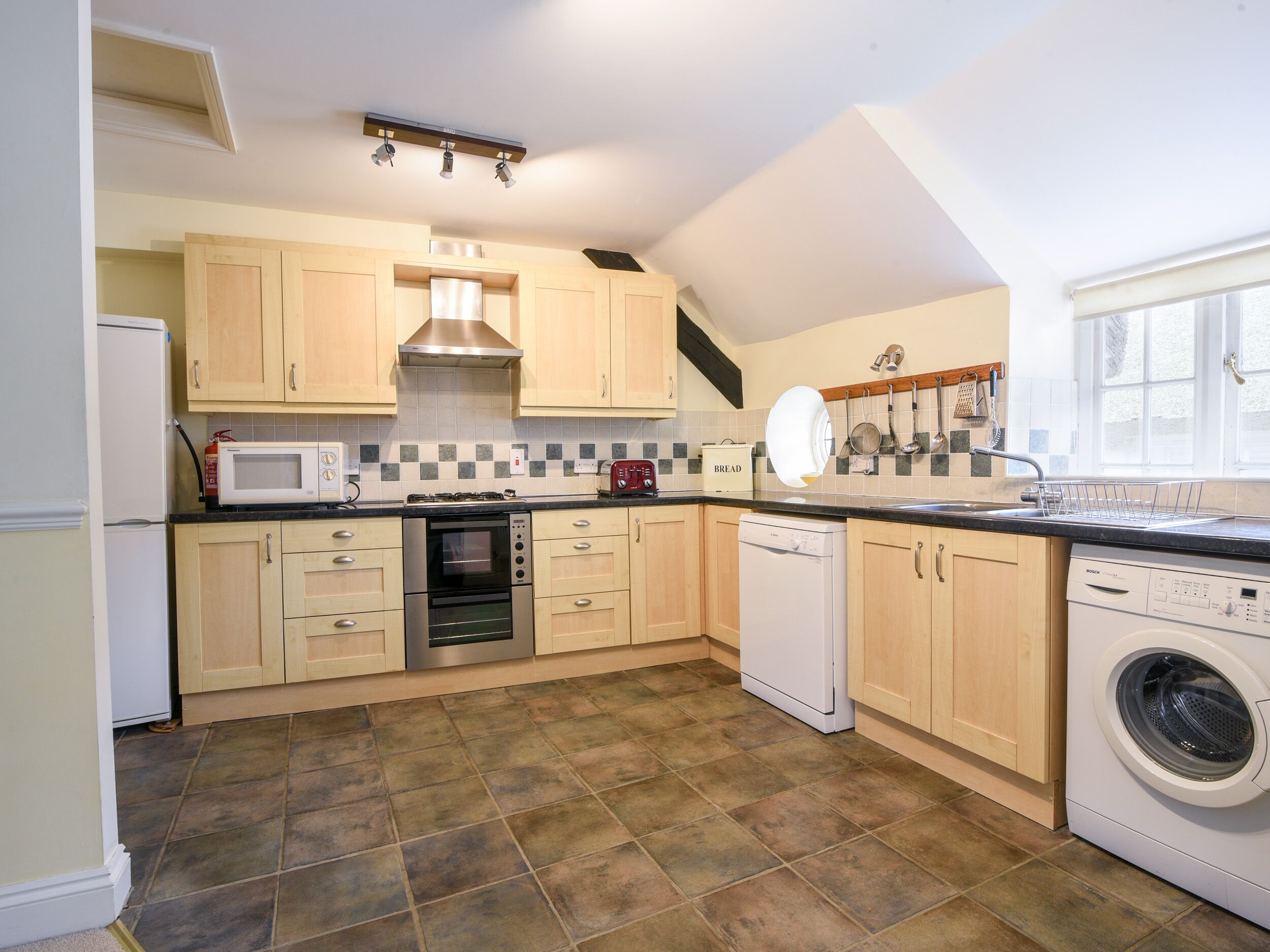 The kitchen is fully equipped with induction stove top, double oven, microwave and full set of pans, crockery, cutlery and glasses. There is a cafetiere for coffee people and a proper teapot for tea drinkers. There is an iron and board stored next to the fridge freezer for those special occasions. Upstairs it has a washing machine/tumble dryer and a clothes rack. For winter, the bathroom has underfloor heating for comfortable toes.