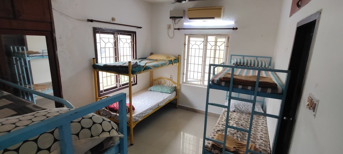 ACtimimg (7pm-7am)Our 8-bed dorm offers a comfortable and convenient base near Guindy and Ekkatuthangal. Enjoy access to great common areas, a fully equipped kitchen, and even car parking! Perfect for solo travelers and backpackers exploring Chennai. Book your bunk today!