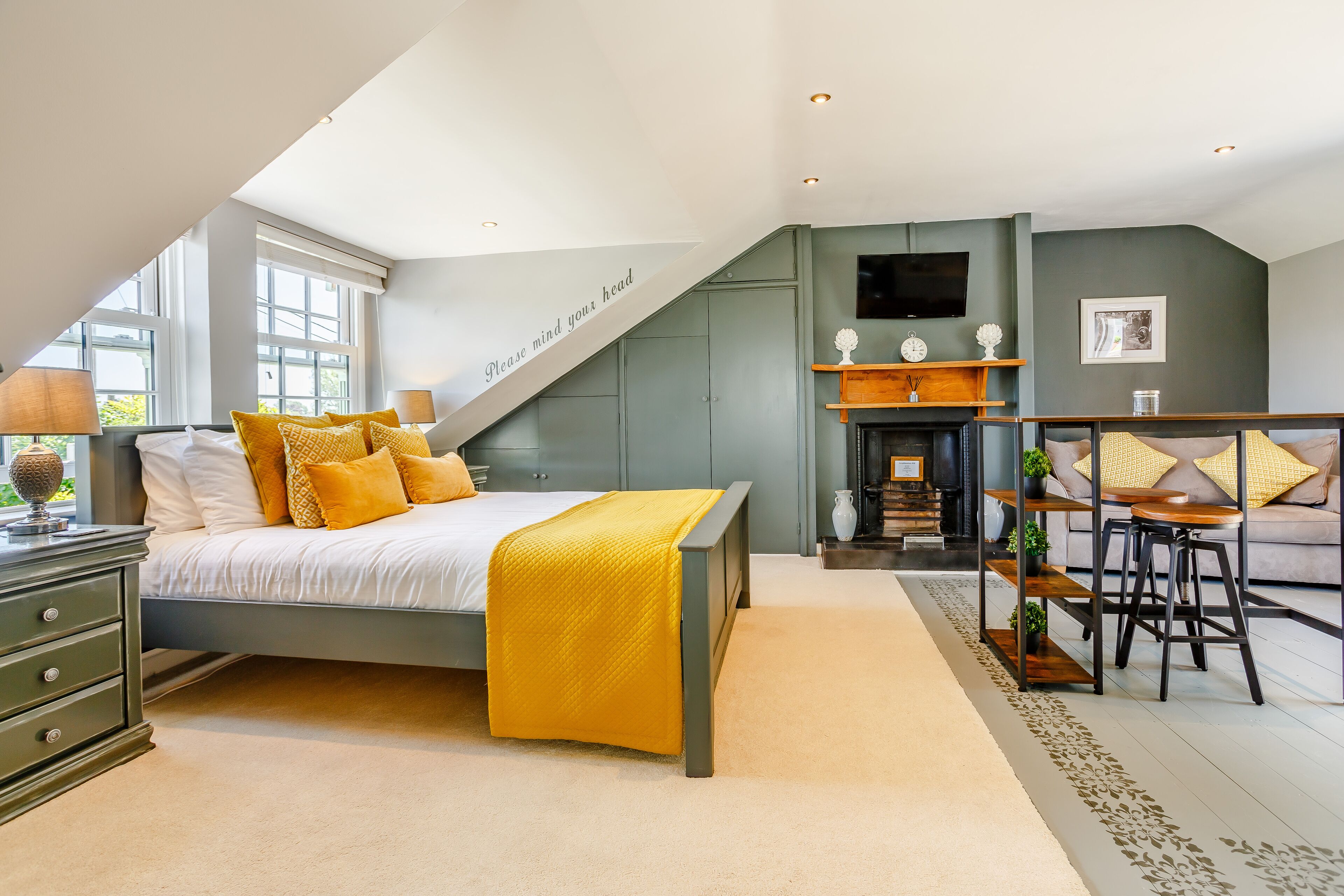 The Loft - A stunning and very spacious Studio which is tastefully furnished and decorated. It has far reaching views towards the Severn Estuary, and also it's own terrace ideal for breakfast and Al Fresco dining. This room has a King Size bed, with the option of Travel Cot or Camp bed for a little one.