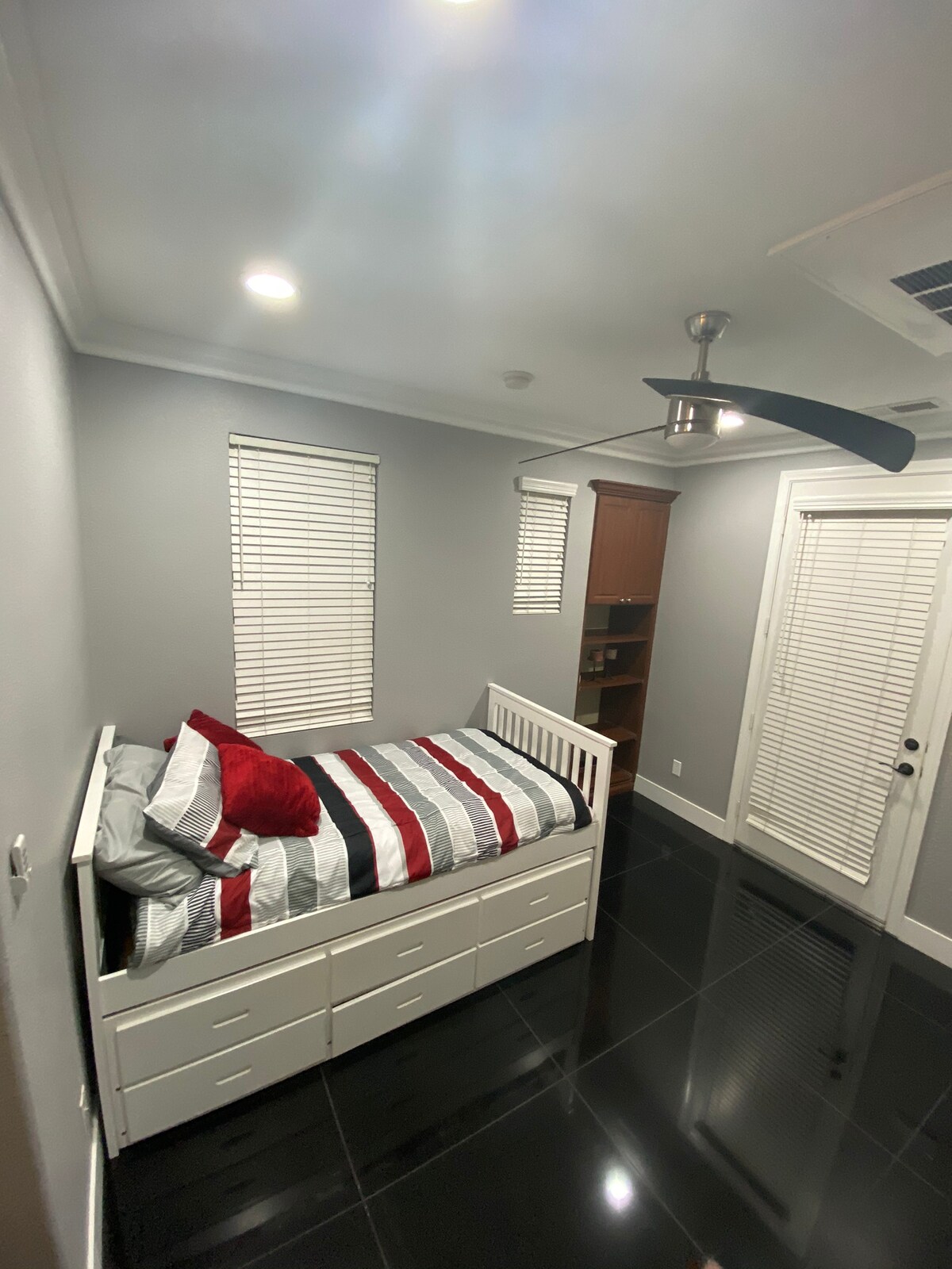 Bedroom #2: Queen bed with Smart TV. Please note that the only Access is through garage. separate from main house. shares the the hallway where washer and dryer are located. please see pics.