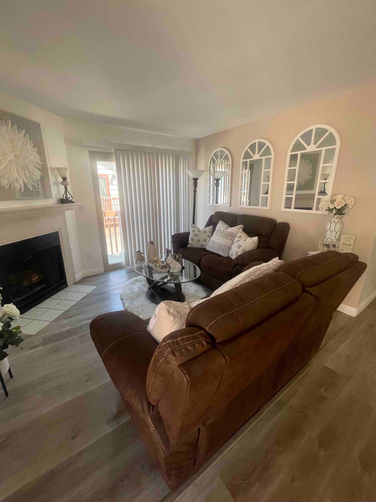 ✲ The living area is on the first level straight from the front door. It is a large area with comfortable seating . The room has a large LG flatscreen TV where you can watch your favorite TV shows with live television, free Netflix, Prime, and YouTube. There are plenty of blankets, pillows, and linen in the living room closet to accommodate a person.