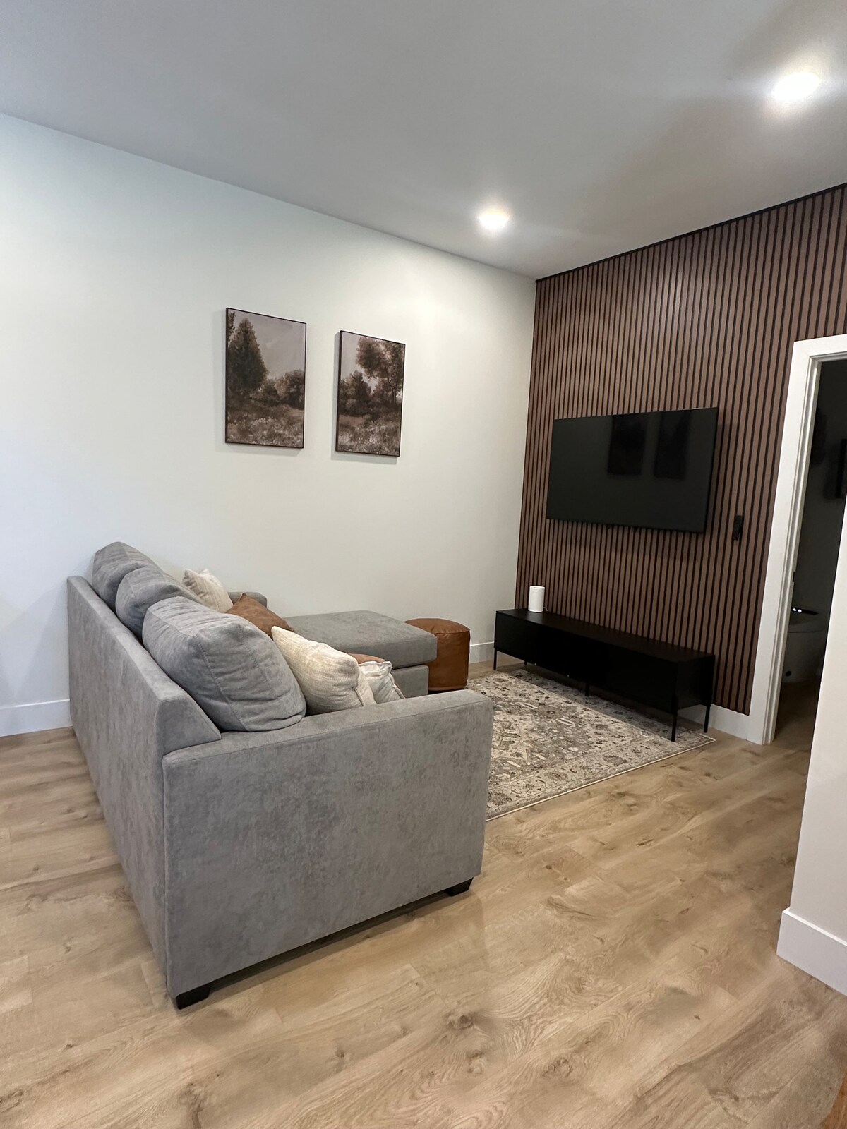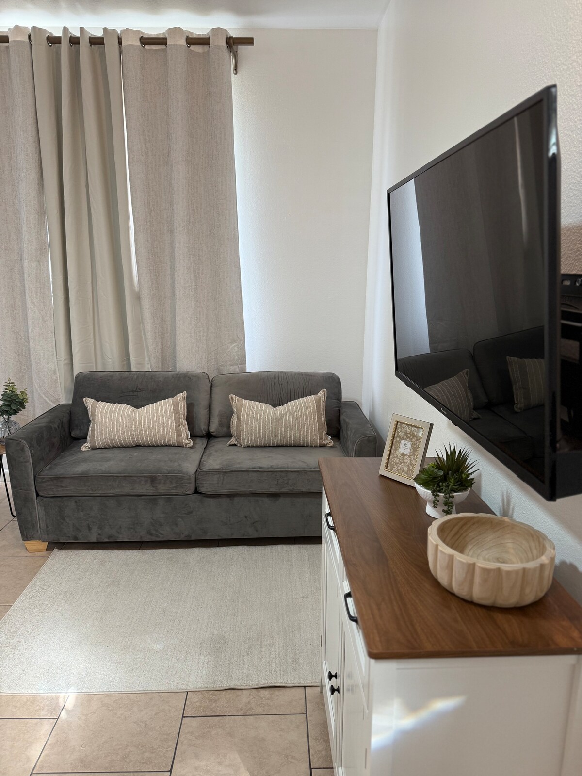 - Open living area with smart TV and Wi-Fi