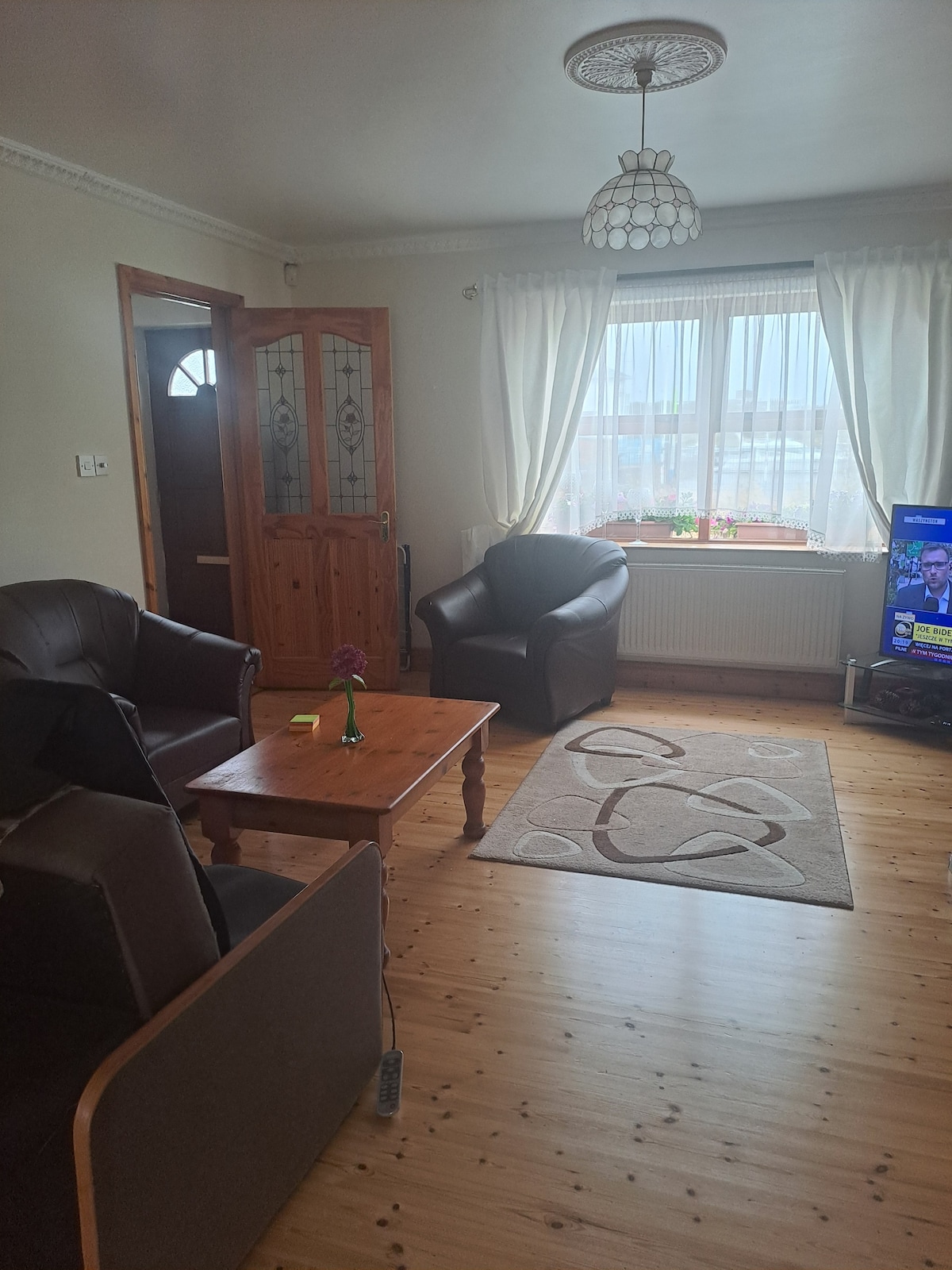 Lovely bright house, 20-25 minute walk from Ennis town centre. Shannon Airport just a 15 minute drive away. We have a large double en suite room with a fitted wardrobe, table & chairs. There are just two of us in the house, myself and my son.