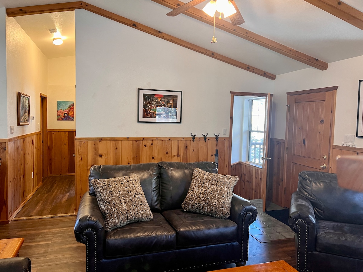 INDOOR LIVING: Smart TV w/ Roku, ceiling fans, soaker tub, unique décor