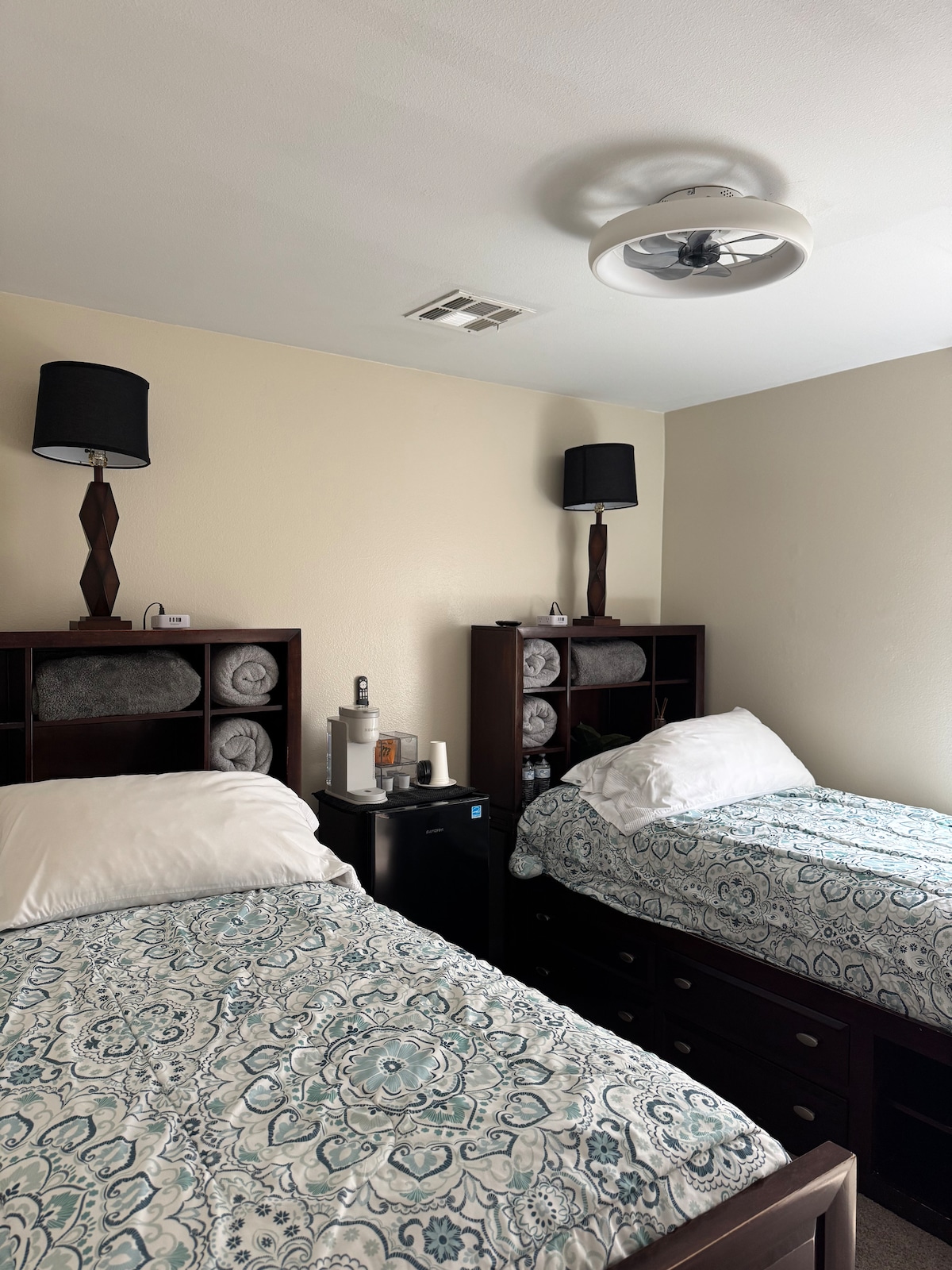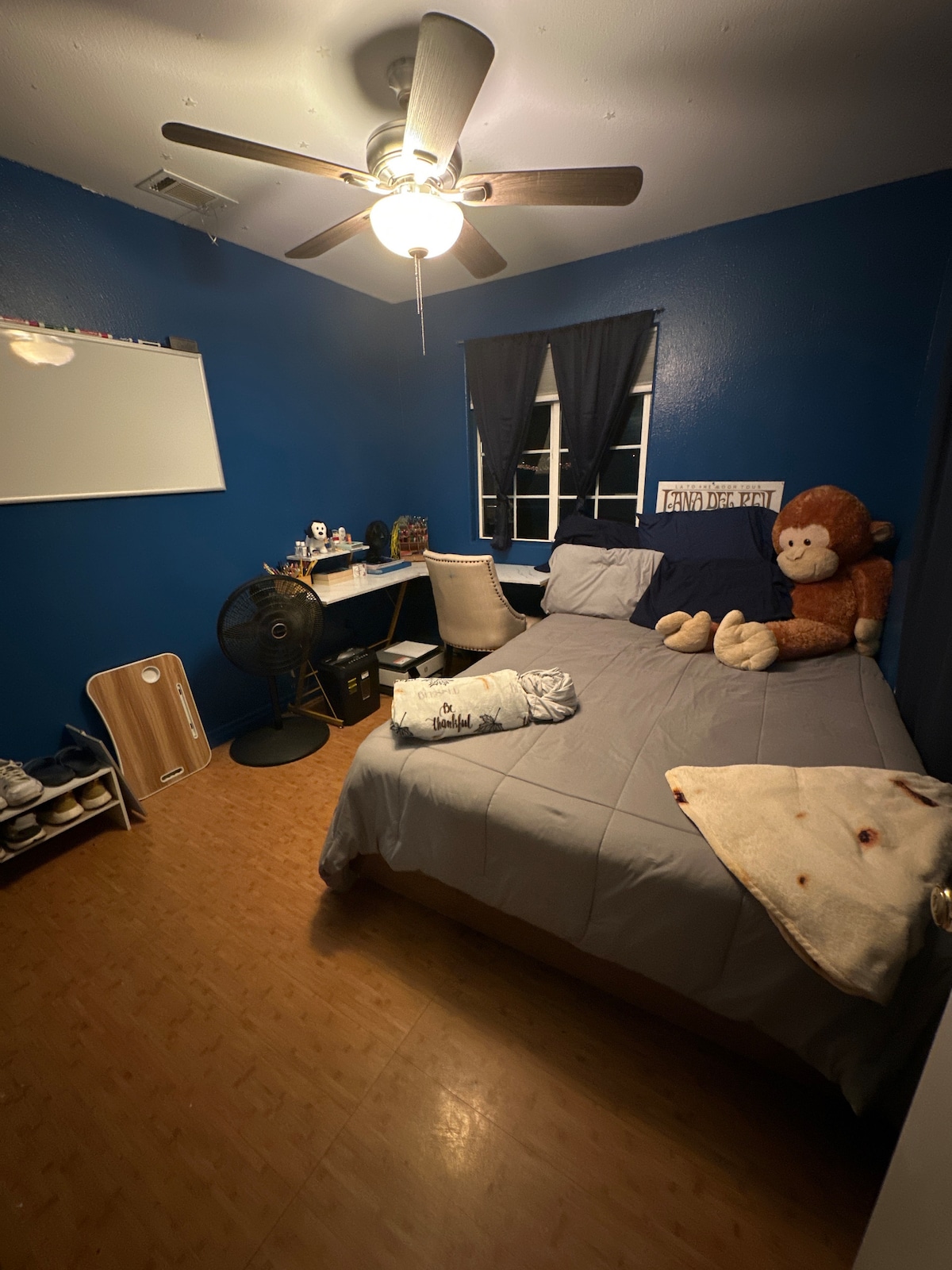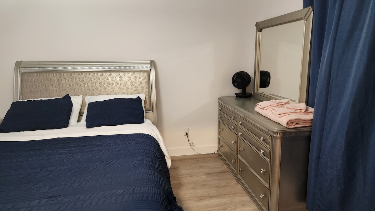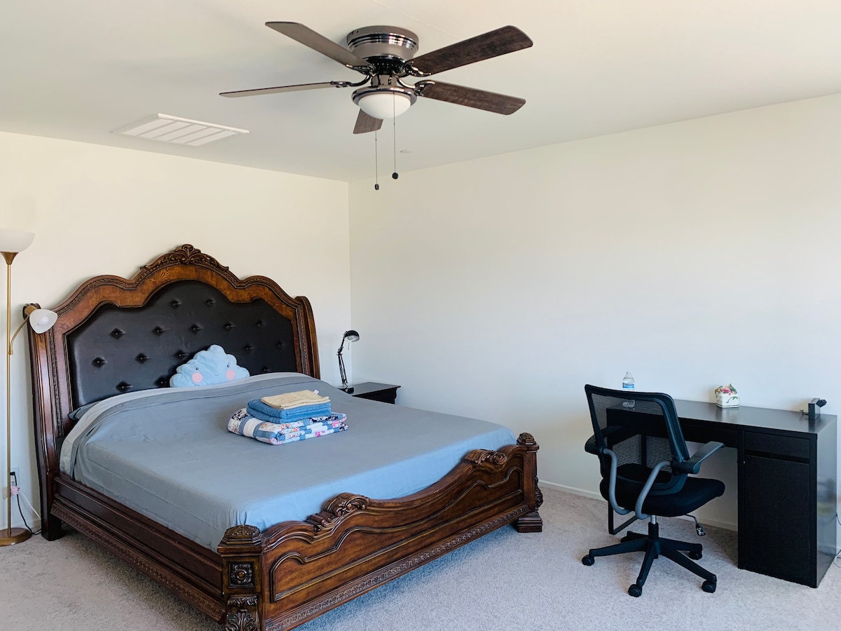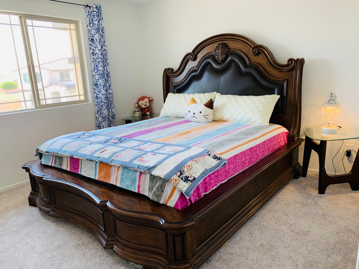 Spacious one queen size room in a new home. Just 3 minutes away from 6th Street Coffee, Del Taco and Jack-n-the Box restaurants.