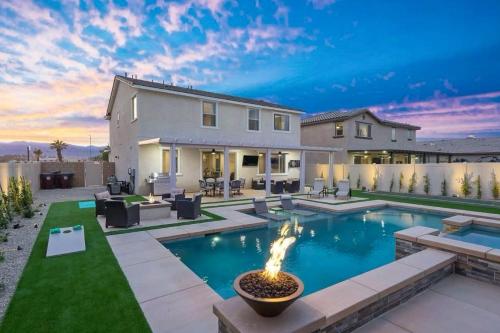This home has been tasteful setup with great amenities and finishes inside and out. From the new pool/spa with water features and sunken firepit. Outdoor you have a large covered dining area with room for 14 people and and custom built-in BBQ. Indoor the decor has a relaxing feel ... great for your vacation. The amazing high end kitchen, game room and spacious layout a perfect for your family and/or friends.