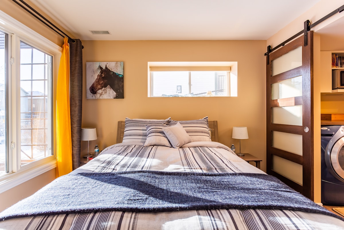 Embark on your next adventure from the comfort of our beautifully crafted guest suite, where every detail is designed with your experience in mind. Whether you're here for the urban allure of Calgary or the natural beauty of the Rockies, our suite offers the perfect blend of accessibility, tranquility, and comfort.