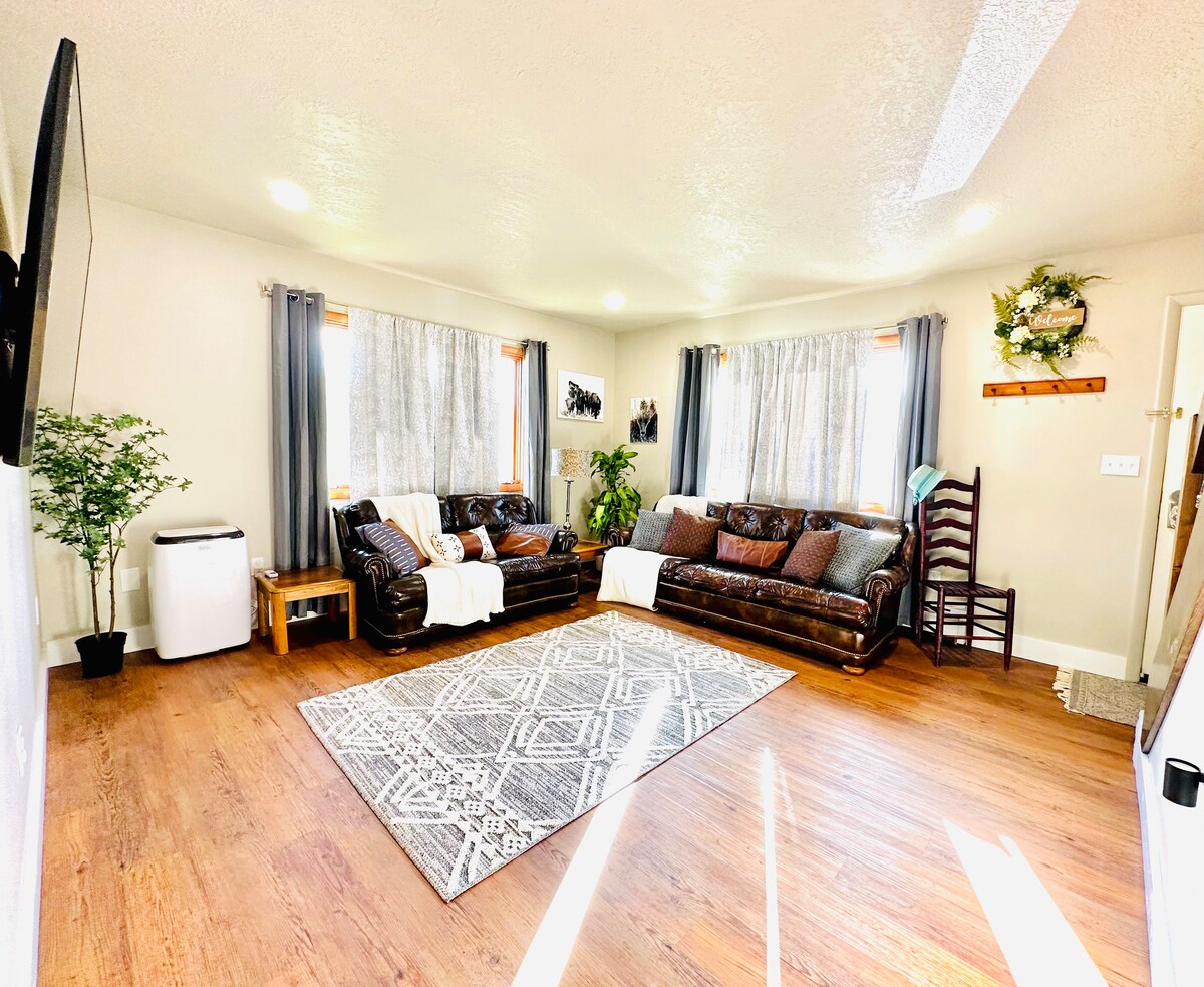 Welcome to your cozy retreat in Cody, Wyoming! This charming UPSTAIRS apartment features two comfortable bedrooms (one king and one queen) and a modern bathroom. The full kitchen is equipped with stylish accents, making it perfect for preparing meals and entertaining. Enjoy the convenience of home with this well-appointed space. Whether you're here for adventure or relaxation, this apartment is the ideal base for your Cody experience. Yellowstone National Park is only 74 miles away!
