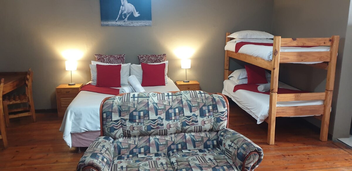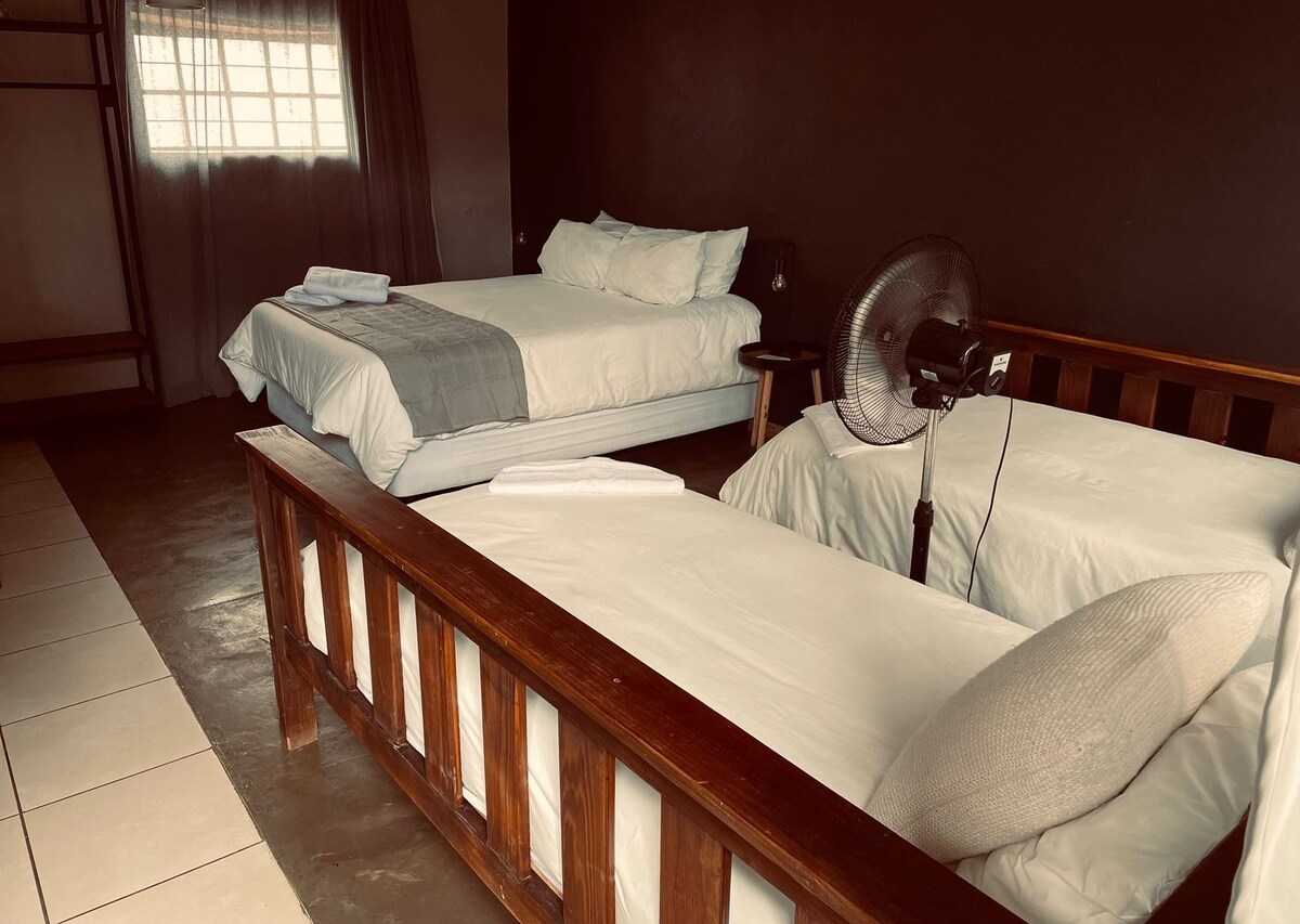 This luxurious self-catering family room sleeps 2 adults and 2 kids. The unit has an en-suite bathroom with a shower. There is a kitchenette with basic appliances, tea/coffee, air-con, and other amenities.