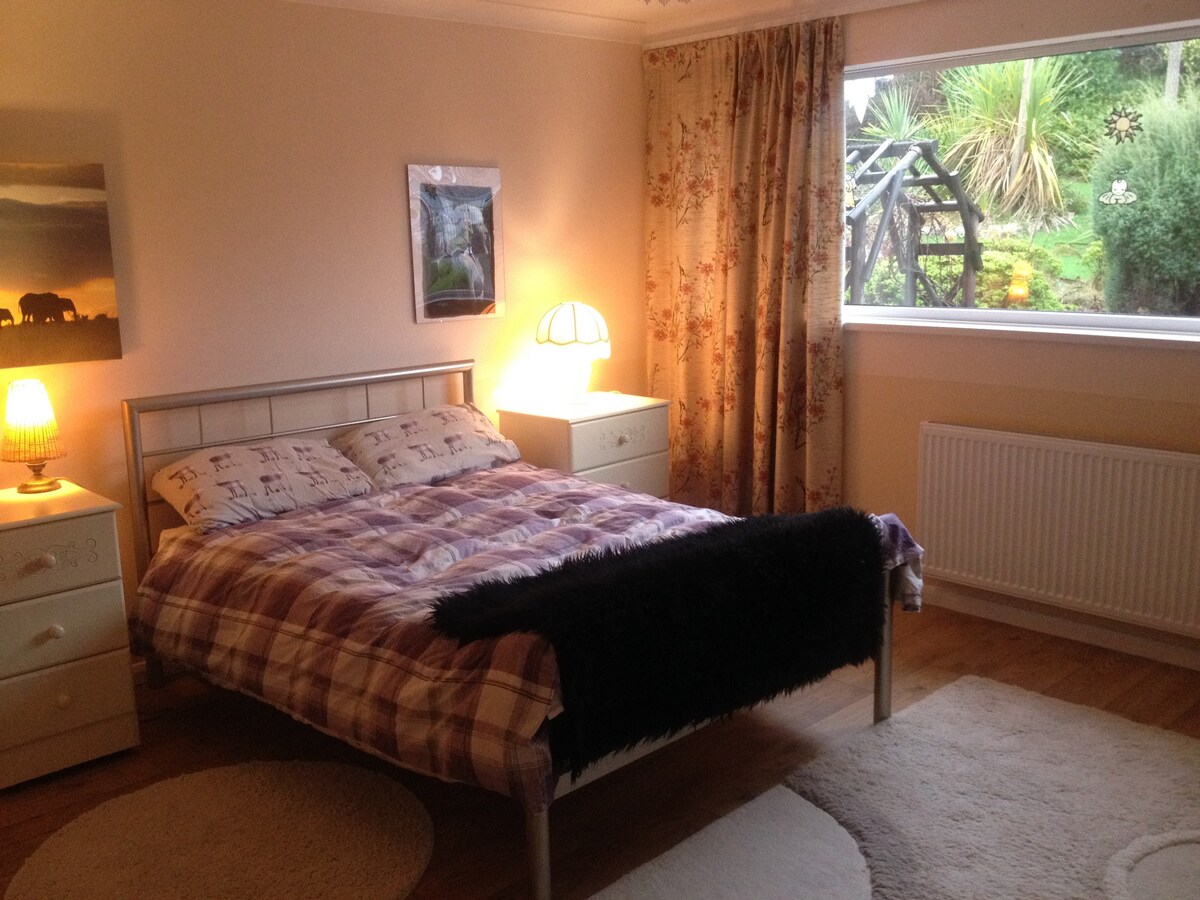 This is a large bedroom, with a king size bed, there is a large 43 inch smart tv in this room with netflix and amazon prime. A kettle is available with tea and coffee, also available is a small table and chair for working. In summer months continental breakfast is available served in the conservatory, in colder months breakfast will be at the breakfast bar in the kitchen. PLEASE NOTE the bathroom is shared.