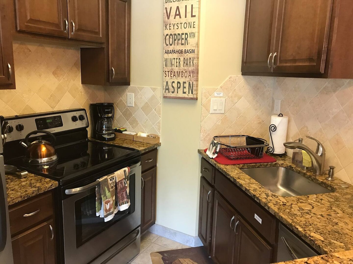 Excellent Mountain Location - Renovated 2 bedroom (Bedroom / Den) with 2 Full Bathrooms. Full kitchen, fireplace, ski locker and sleeps up to 6 people. Right on the base of the high speed Super B Lift. Ski Lodge next door & great for family ski trips. Eagle, Flyer ski-lifts and Gondola nearby. Smart TV, Wi-Fi, Free Parking, Beautiful in the summer months. On the golf course, river, bike path. Access to the Athletic Club with Hot Tubs, Indoor Pool, Steam Rooms, Saunas and more for guest day fee.