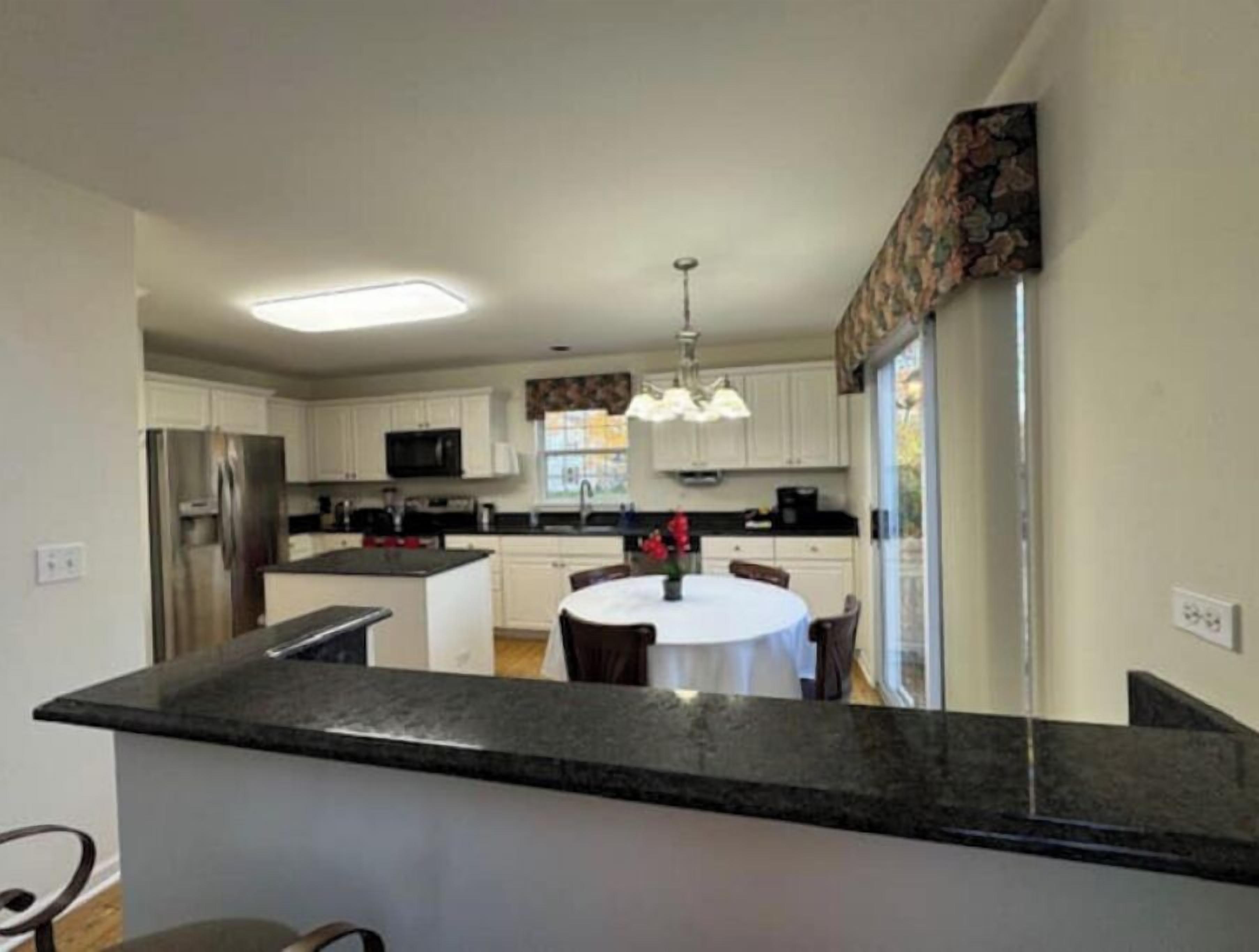 Step inside to discover a newly renovated, spacious, and tastefully decorated interior that exudes a sense of luxury and warmth. The heart of the home is the stunning kitchen, featuring luxurious marble countertops that add a touch of elegance to the space. Complete with a full dining area that comfortably seats eight guests, as well as a cozy kitchen table for more intimate meals, the kitchen is fully equipped to meet all your culinary needs, whether you’re preparing a family feast or a casual breakfast.